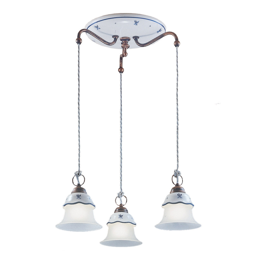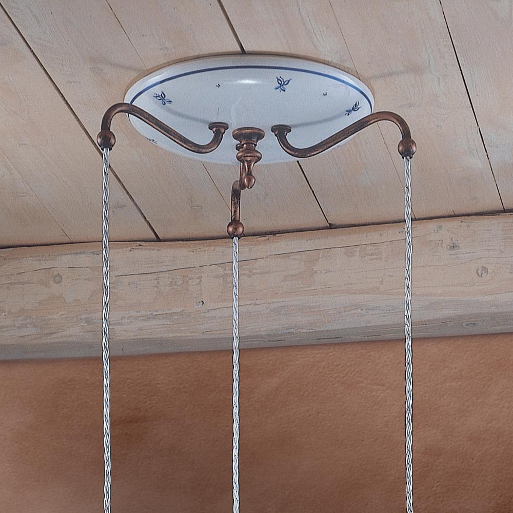 Llamba e varur me 3 drita prej hekuri, qeramike e dekoruar me dore dhe xhami e etched me acid prodhim Italie nga Ferroluce.