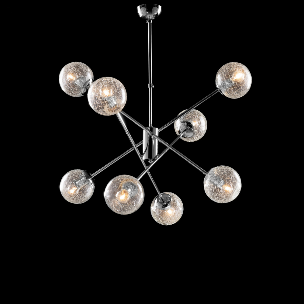 Përfundimi i lëmuar i kromit rrit shkëlqimin e metalit dhe amplifikon përhapjen e dritës, duke e bërë këtë varëse ideale për dhomat moderne të ndenjes, dhomat e ngrënies, hapësirat e hapura, ambientet e projektuesve dhe hapësirat prestigjioze me kontrata . Sferat ndriçuese plotësojnë estetikën me një prekje të rafinuar dhe bashkëkohore, duke e transformuar dritën në një element të vërtetë mobilimi.