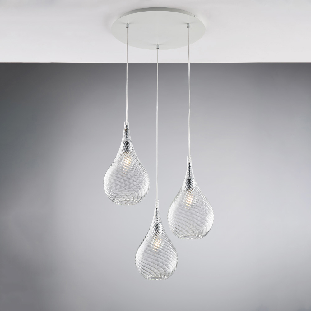 Elegante dhe e ndritshme, kjo varëse hekuri e punuar me dorë me xham Pyrex është një zgjidhje bashkëkohore dhe e rafinuar ndriçimi. Tre difuzorët e butë dhe sinkronë prej qelqi Pyrex shpërndajnë dritën në mënyrë të barabartë dhe delikate, duke krijuar një atmosferë mikpritëse dhe të sofistikuar.