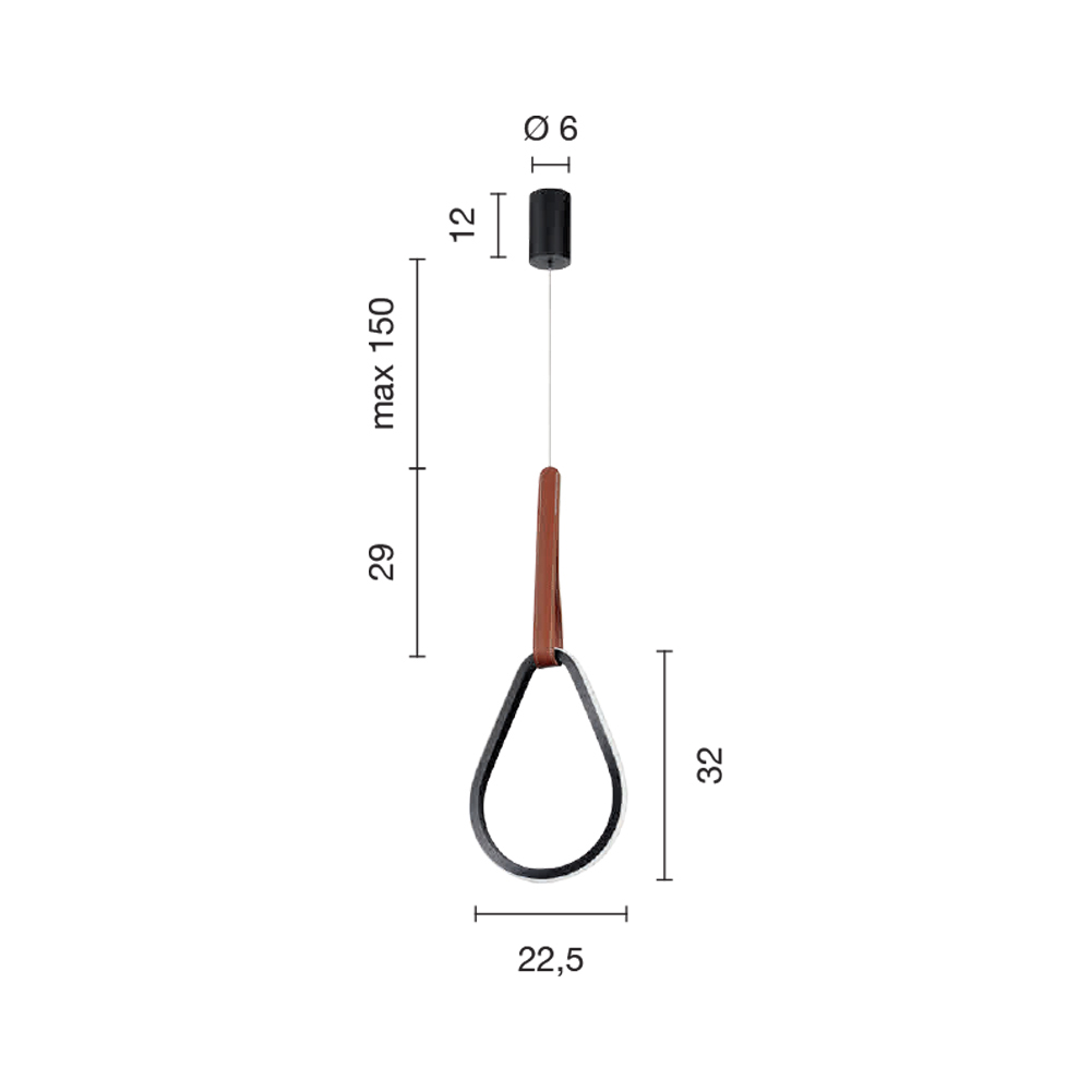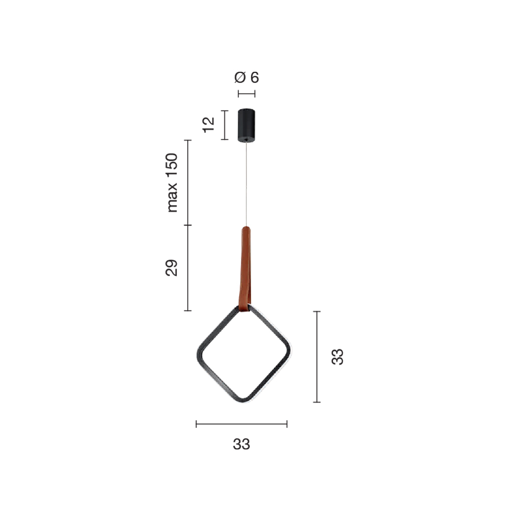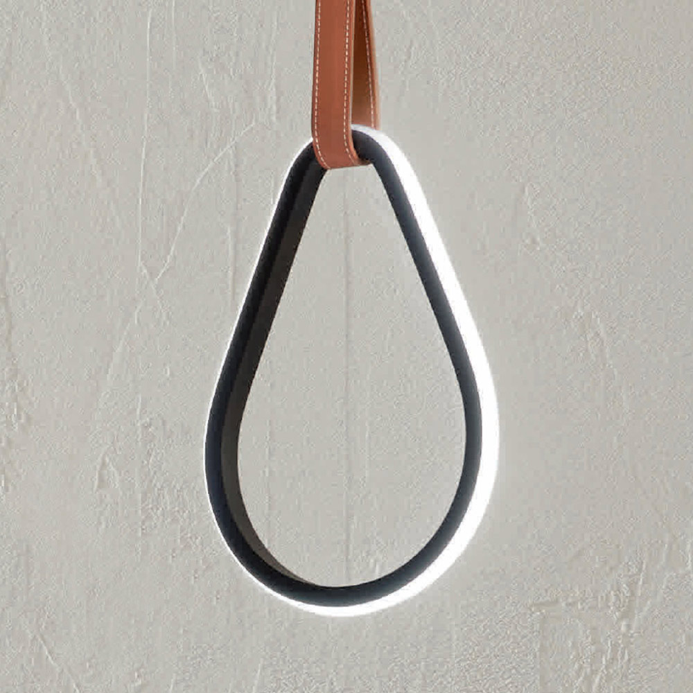 Llamba varësee prodhuar tërësisht në Itali e prodhuar nga metali i lyer me ngjyrë të zezë dhe element prejlëkure eko ngjyrë lëkure me kabllo të rregullueshme në gjatësi dhe drita LED me errësim në forma të ndryshme gjeometrike. Ky produkt synon të përmirësojë traditën përmes një qasjeje bashkëkohore ku stili, klasi dhe inovacioni bashkohen për të krijuar formula të reja dizajni për të mobiluar dhe ndriçuar çdo ambient me shije dhe karakter. Pikat e forta janë veçantia e formave , cilësia e materialeve dhe veçantia e burimit të dritës .