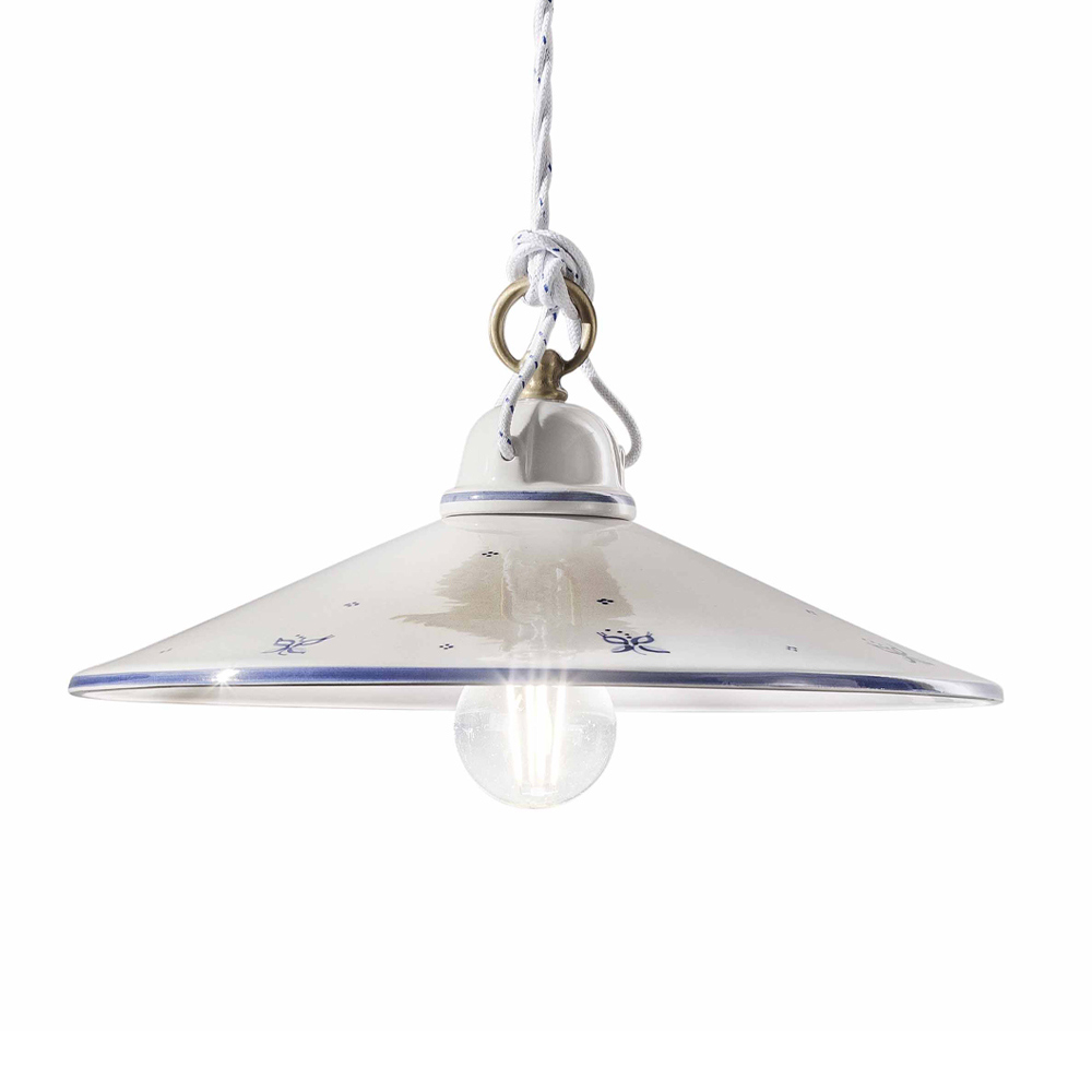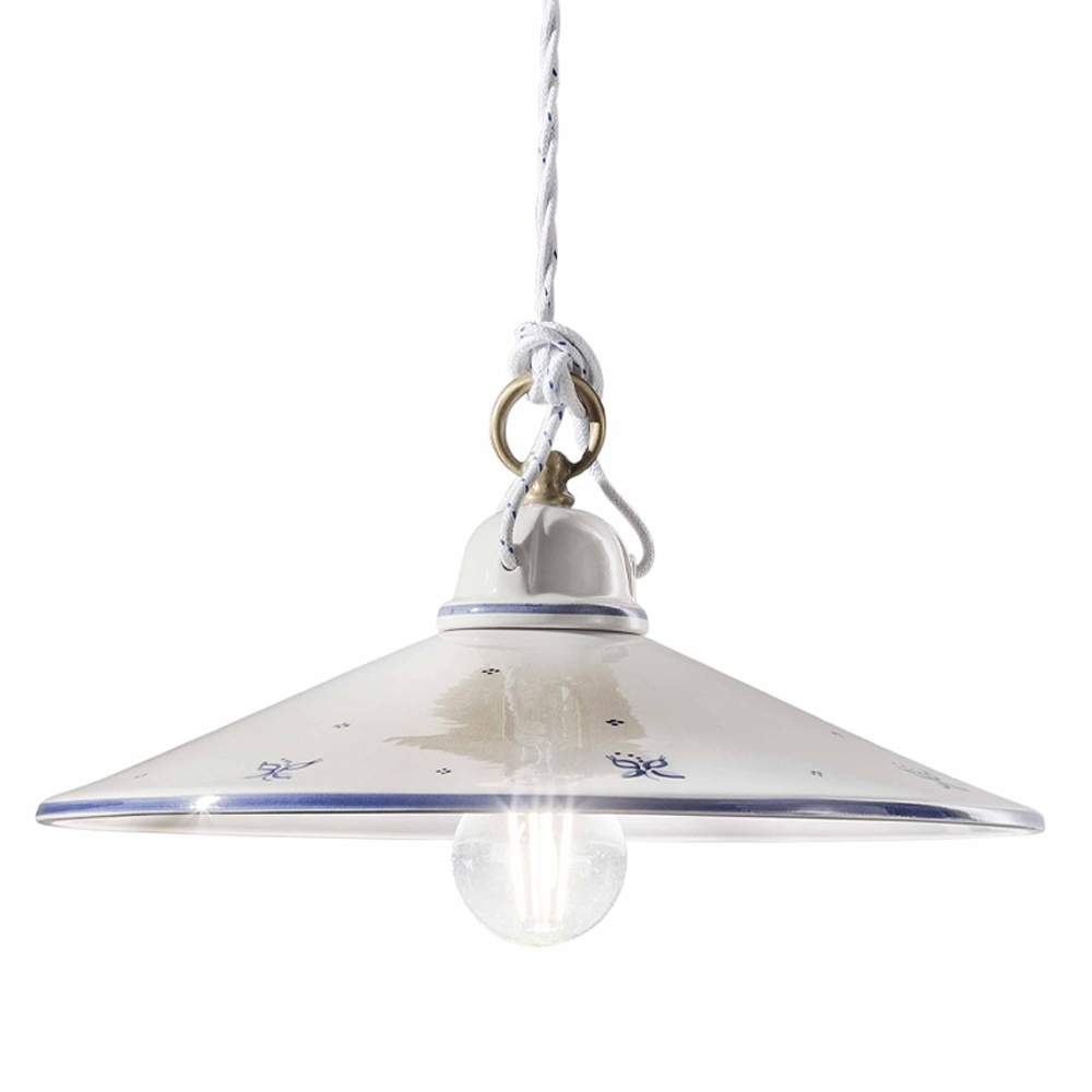 Llambë varëse vintage prej hekuri dhe qeramike e lyer me dorë e prodhuar në Itali nga Ferroluce.