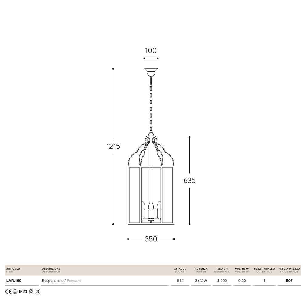 Llambë e varur me 3 drita bronzi dhe Turandot qelqi
