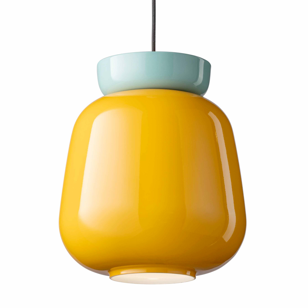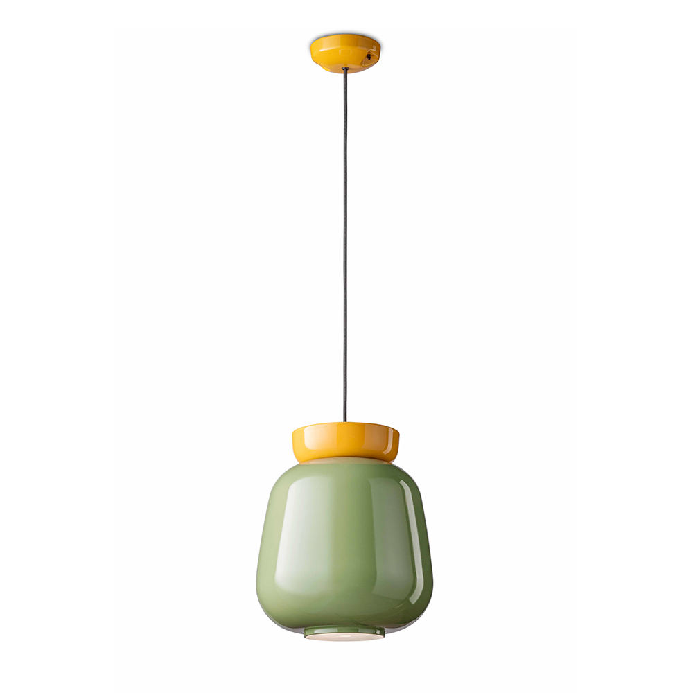 Llambë varëse prej qeramike me ngjyrë , difuzer xhami i lyer dhe kabllo pambuku e mbuluar, tërësisht Prodhuar në Itali.
