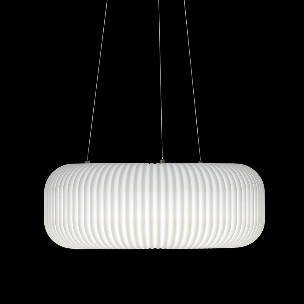 Kjo llambë dallohet për dizajnin e saj elegant dhe minimalist , i cili kombinon kabllot e hollë metalikë me një shpërndarës plastik në formë organike. Plastika, e punuar me detaje të palosur, shton një prekje të përsosjes vizuale dhe ndihmon në shpërndarjen e butë dhe të barabartë të dritës, duke krijuar një atmosferë mikpritëse dhe relaksuese.