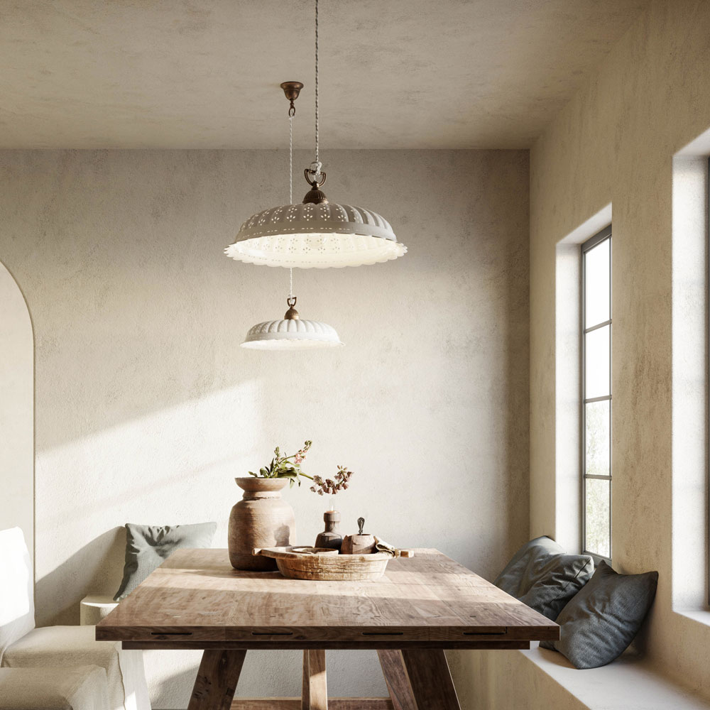 Llambë varëse qeramike e bardhë Anita Il Fanale Ø42 cm, e bërë në Itali Llamba e dritës 1 x max 77W E 27 - nuk përfshihet Koleksion Anita Balanca e jashtëzakonshme e elegancës në stilin e artit të ri dhe komoditetin modern e bëjnë këtë koleksion një kryevepër artizanale, e karakterizuar nga detaje të hulumtuara me profesionalizëm. Qeramika e famshme e Bassano e përdorur për të bërë këto llamba, shtoni vlerë shtesë këtyre krijimeve.