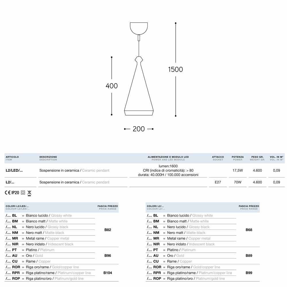 < Llambë varëse qeramike me stilizuesI Lustri nga Aldo Bernardi . ILustri është në dispozicion me përfundime të ndryshme dhe me prizë për llambë standarde E27 ose me dritë LED.