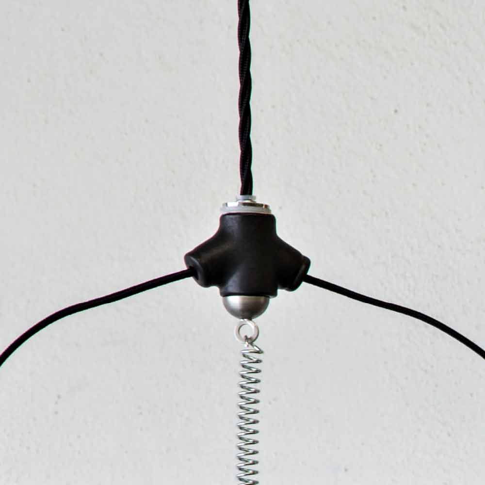 Karakteristikat: - Llambë e lehta: 1 x E27 max 42W, IP 20 - Materialet: Qeramikë e bardhë - Kabëll elektrik i disponueshëm në ngjyrë të zezë, kafe, ari ose fildish - Pranvera e disponueshme në bronz të zinkuar ose të zezë