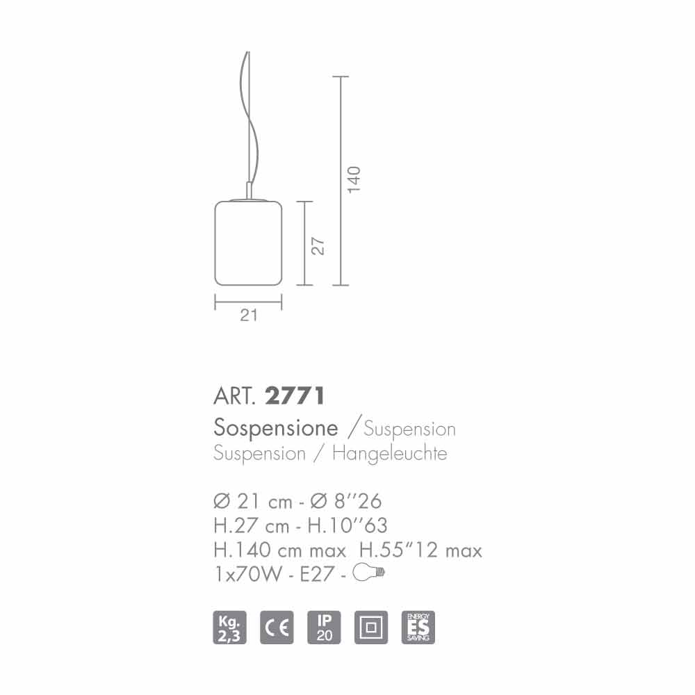 Llambë varëse Selene Domino, e bërë nga qelqi i çelur Ø21 H 27/140 cm.