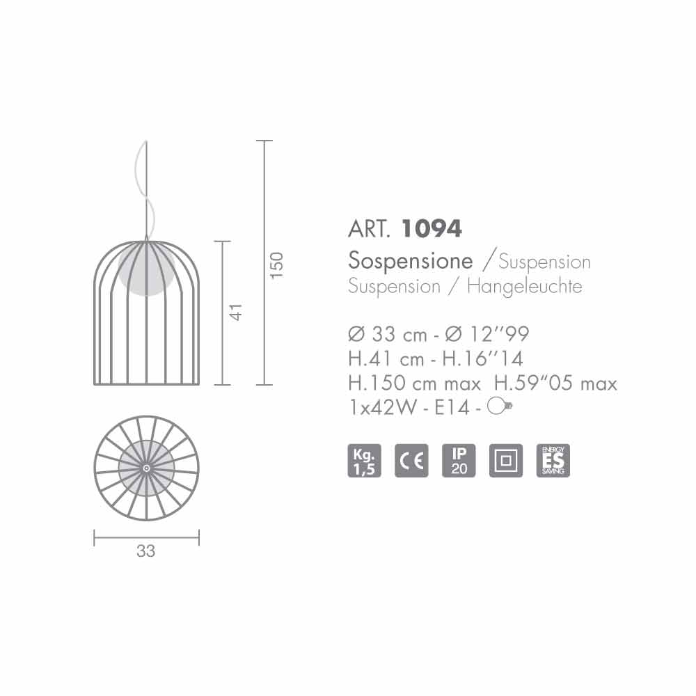 Mbledhja e tre pezullimeve dhe tre llambave të tavolinës, të cilat mund të arrijnë një madhësi të konsiderueshme, të përbërë nga një kafaz metalik dhe një top qelqi me qumësht të bardhë.
