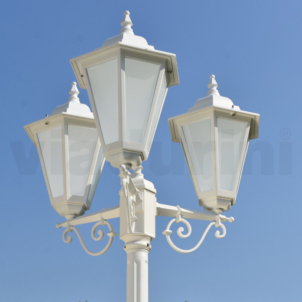 Llamba rruge 3-drite alumini me difuzer xhami Prodhuar ne Itali, stil vintage.