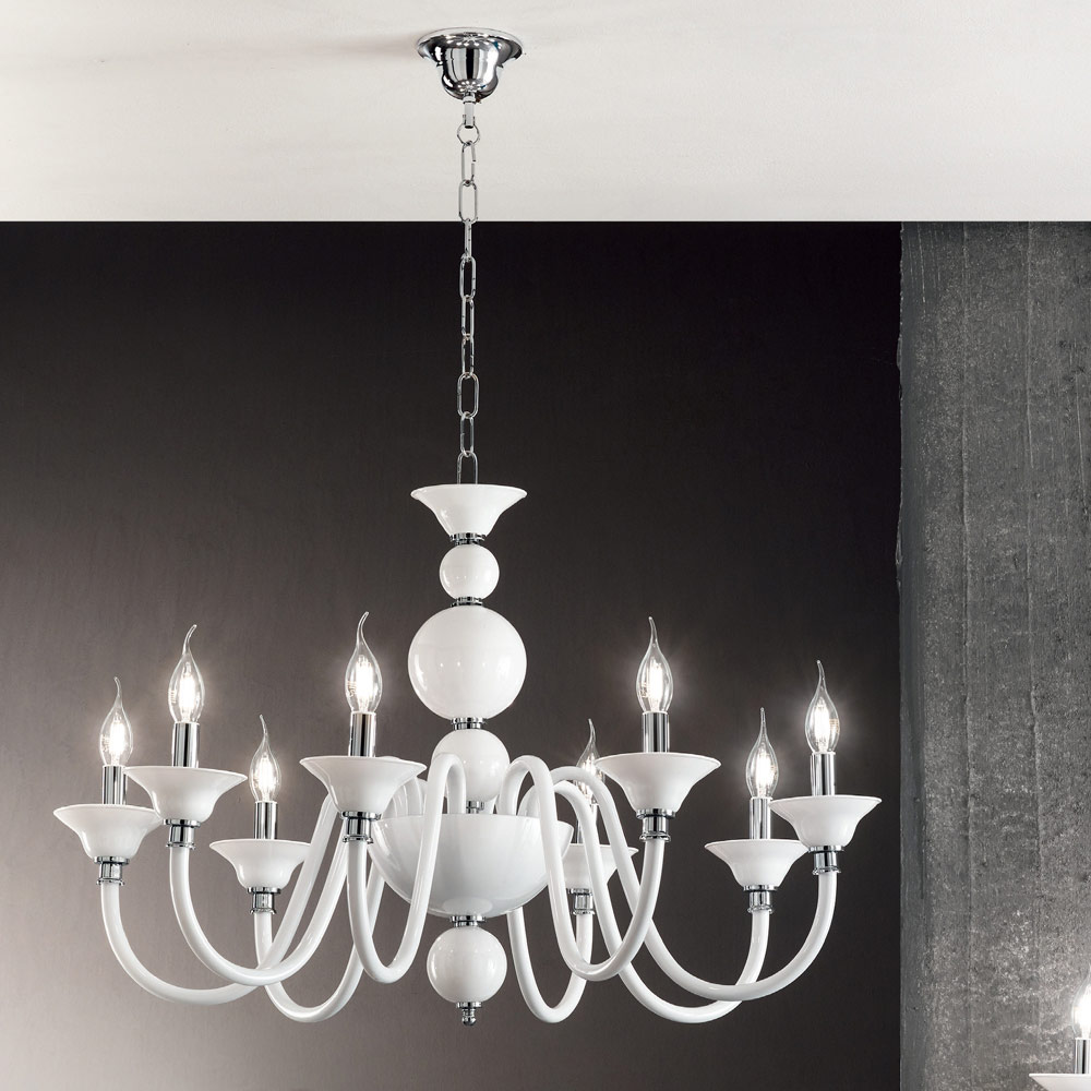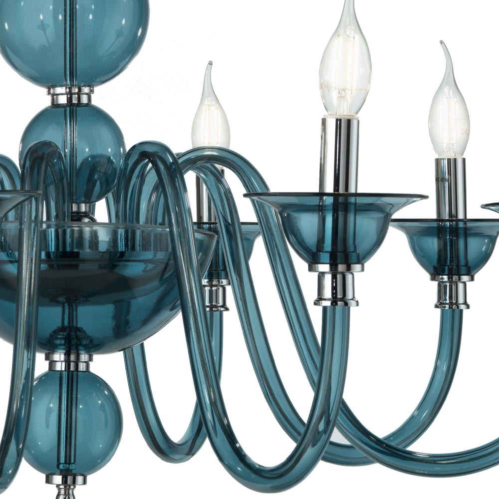 Llambadar klasik me 8 drita në metal krom dhe xham të punuar me dorë, luksoz i prodhuar në Itali.