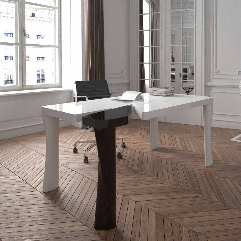 Tavolinë zyre projektuesi në sipërfaqe të ngurtë; Punk Materiali : Sipërfaqja e ngurtë; Përfundimi : Llak me shkëlqim/mat i disponueshëm në variacione të ndryshme ngjyrash Projektuesi : Alessio Baldon Përmasat : L.160 x D. 80 x H. 75 cm Pesha : 21 kg