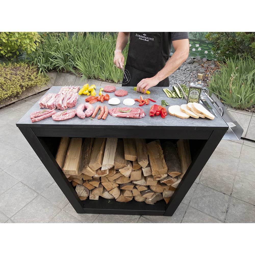 Rruga e punës në gur prej guri porcelani është 90 cm i gjatë dhe do t'ju lejojë një hapësirë shtesë ku mund të përgatisni mish dhe perime për kuzhinën tuaj ose BBQ.