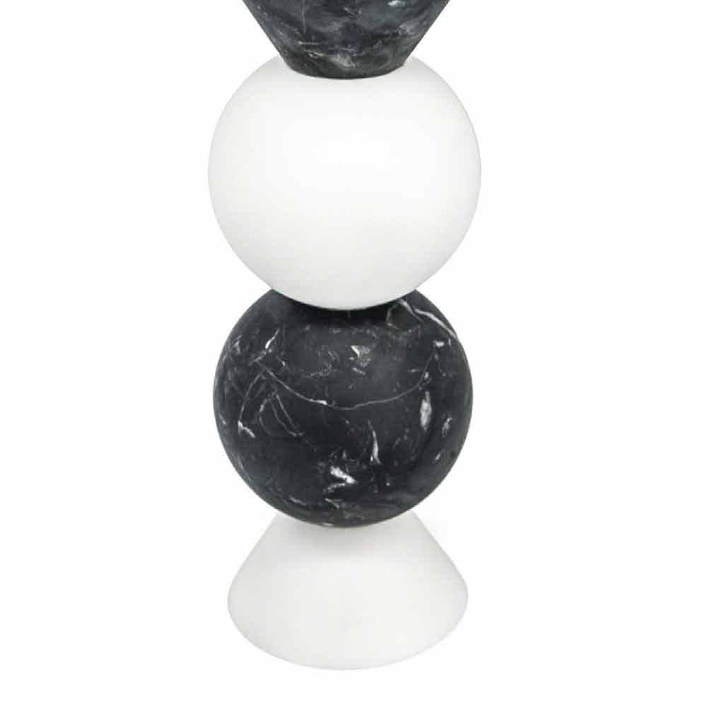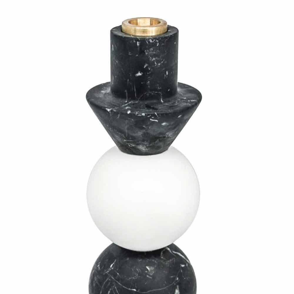 Mbajtëse qirinjsh e punuar me dorë e bërë plotësisht me mermer dhe bronz me cilësi të lartë . Do të konsiderohet si një copë unike pasi çdo bllok mermeri i përdorur ndryshon nga të tjerët për venat dhe nuancat. Mermeri i bardhë vjen nga gurorja Poggio Silvestre, një burim i mermerit të cilësisë së parë të klasifikuar që nga shekulli i kaluar ndërsa mermeri i zi Marquinia nxirret nga guroret spanjolle.
