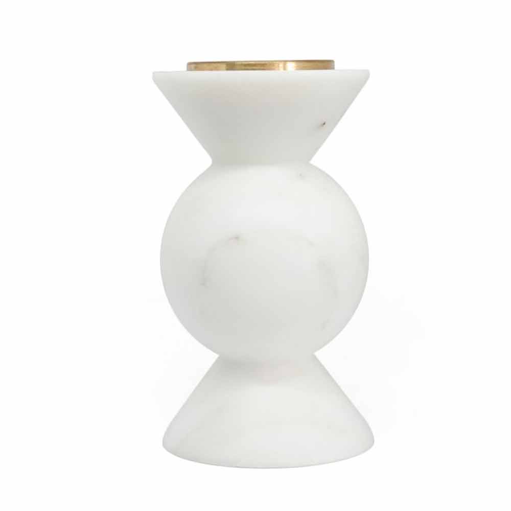 Mbajtëse qirinjsh me dizajn të ulët në mermer dhe bronz të bardhë Carrara Prodhuar në Itali.