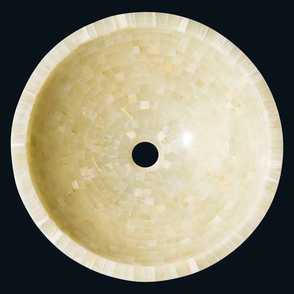 Lavaman i rrumbullakët në countertop në gurin e oniksit të mjaltit Kilian