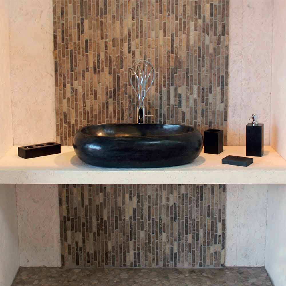Mbajtës i rrumbullakët i countertopit në Waka me gur të zi natyral Dimensionet: diametri 40 x 60 x H 15