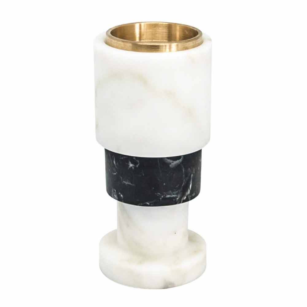 Dizenjoni mbajtëse qirinjsh prej mermeri të bardhë Carrara, mermer të zi Marquinia dhe bronzi Prodhuar në Itali.