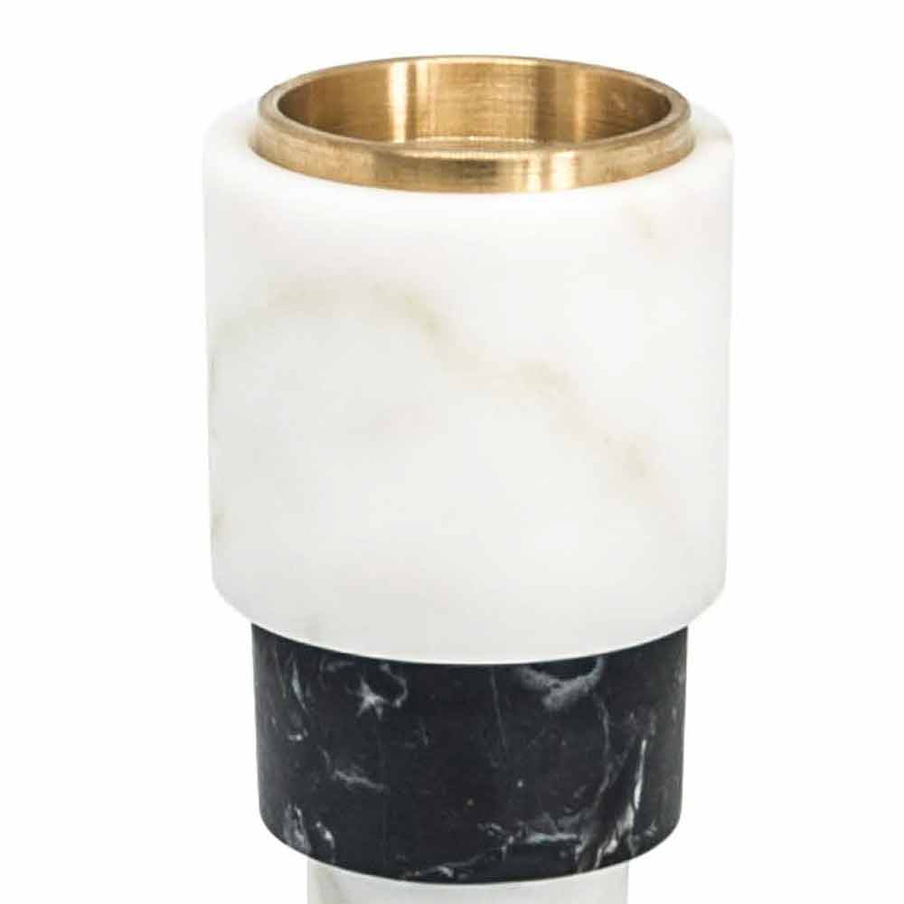 Dy-mbajtës qirinjsh ton bërë me mermertë cilësisë së lartë dhe bronzi. Do të konsiderohet si një copë unike pasi çdo bllok mermeri i përdorur ndryshon nga të tjerët për venat dhe nuancat. Mermeri i bardhë vjen nga gurorja Poggio Silvestre, një burim i mermerit të cilësisë së parë të klasifikuar që nga shekulli i kaluar ndërsa mermeri i zi Marquinia nxirret nga guroret spanjolle.