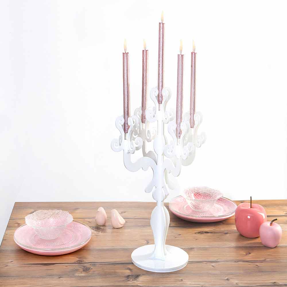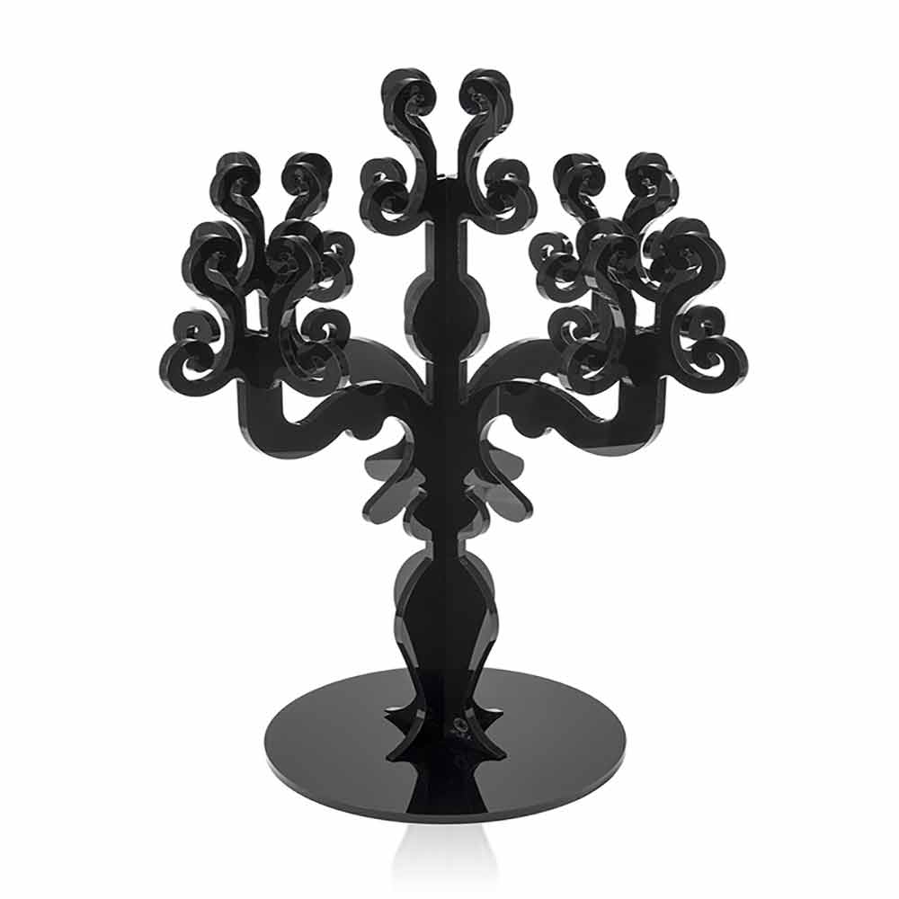 Mbajtëse e mesme e qirinjve me 5 krahë në pleksiglas: Arbus Mbajtësi i qirinjit Arbus është elegant dhe me një shije rilindjeje të përshtatur për kohën tonë: 5 krahë në PMMA plexiglasi transparente, me forma të prera lazer që kujtojnë zbukurimet e çmuara të mbajtësve të qirinjve të rilindjes në kristalin shkëmb. Karakteristikat fiziko-teknike të pleksiglas (rezistente nga goditja, pa ndryshueshmëri, i pandryshueshëm, izolues termik) e bëjnë mbajtësin e qirinjit të përshtatshëm si për hapësirat e brendshme ashtu edhe ato të jashtme. Shkëlqimi dhe shkëlqimi i saj ruhen të pandryshuar dhe të pandryshuar me kalimin e kohës. Plexiglasi PMMA i përdorur nga polimeri i virgjër është jotoksik, hipoallergjik, pa erë dhe antibakterial. 100% e riciklueshme. Mendim, projektuar dhe bërë në Itali me materiale italiane. Matjet e saj janë: L 36 x P 36 x H 50 cm. Në dispozicion në ngjyrat e mëposhtme: e zezë, e bardhë, tymosje-gri e tejdukshme dhe transparente.