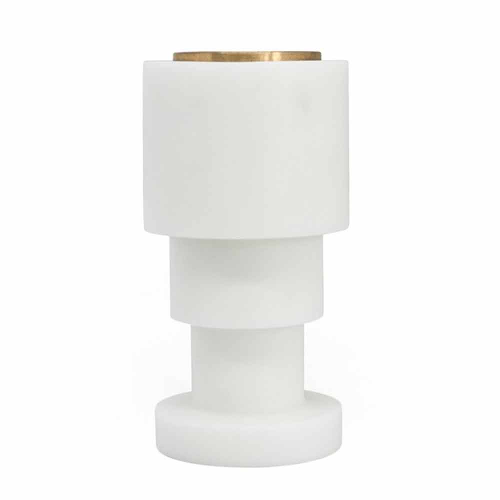 Mbajtëse qirinjsh e ulët prej mermeri dhe bronzi me ngjyrë të bardhë Carrara . Isshtë një copë unike pasi çdo bllok mermeri i përdorur ndryshon nga të tjerët për venat dhe nuancat. Mermeri vjen nga gurorja Poggio Silvestre e cila është një burim i mermerit të bardhë të cilësisë së parë të klasifikuar që nga shekulli i kaluar. Cshtë punuar me dorë nga profesionistëe specializuar për breza në përpunimin e mermerit.