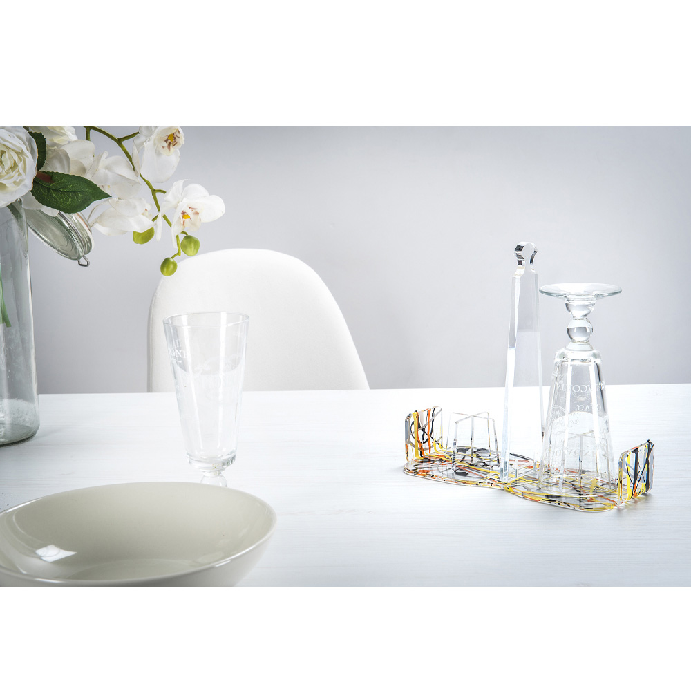 Mbajtëse filxhani prej pleksiglas transparent 100% nga polimer i virgjër. Një produkt funksional dhe elegant është konceptuar, projektuar dhe prodhuar në Itali , me materiale italiane, ideale për të servirur pije dhe ushqime. Rezistent, elegant dhe i rafinuar, ka një dizajn origjinal dhe gjeometrik dhe është i përshtatshëm për çdo rast, falë edhe shkëlqimit dhe shkëlqimit të tij që mbeten konstante dhe të pandryshuar me kalimin e kohës.