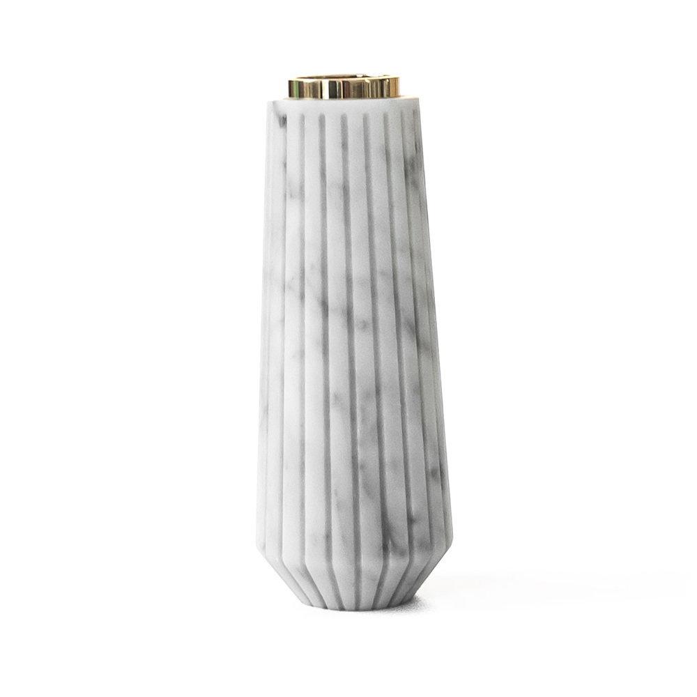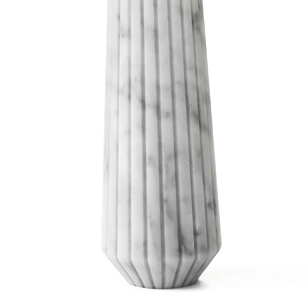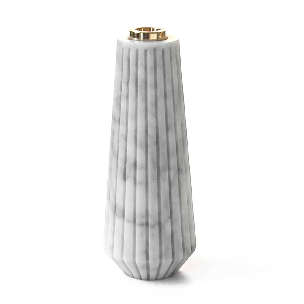Mbajtëse qirinjsh e madhe me vija në mermer të bardhë Carrara dhe tunxh, prodhim Italie.
