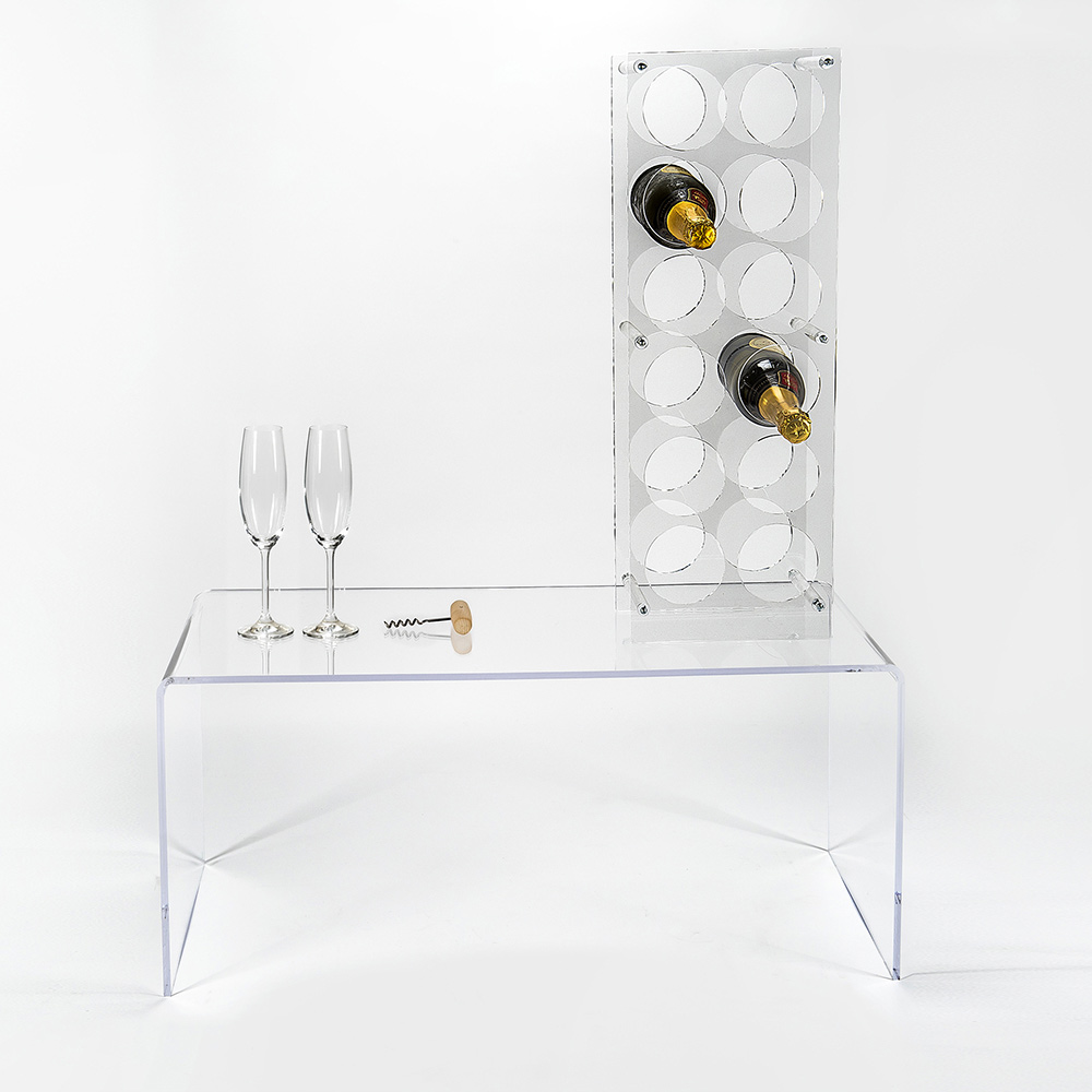 Prodhuar në Itali Raft shishe me 12 vende në pleksiglas transparent dhe dru.