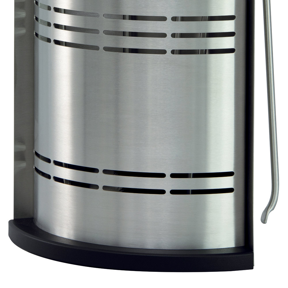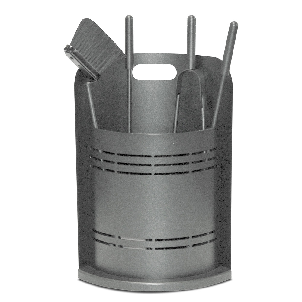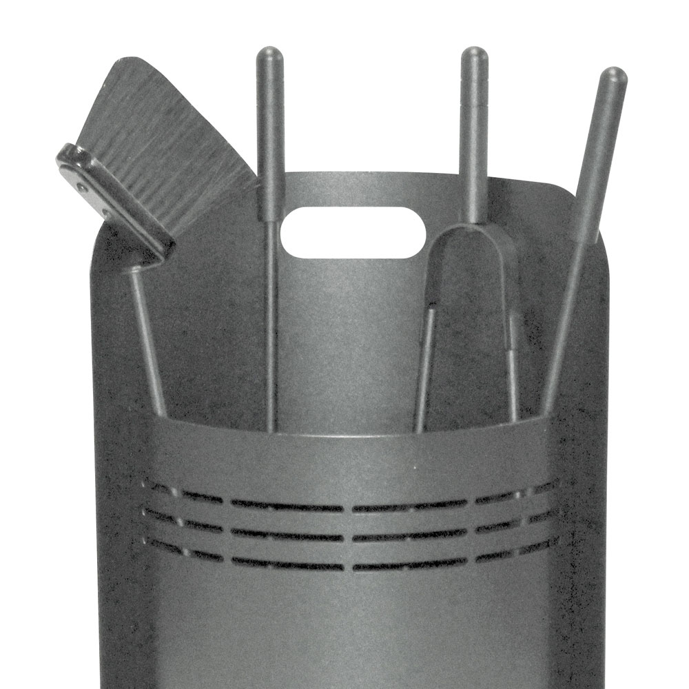 Ky mbajtës i veglave të zjarrit është ideal për ata që kërkojnë një prekje të dizajnit bashkëkohor . Forma e tij cilindrike është elegante dhe që kursen hapësirë, ndërkohë që vrimat horizontale jo vetëm që krijojnë një detaj vizual që bie në sy, por gjithashtu sigurojnë ajrim të përshtatshëm për pajisjet.