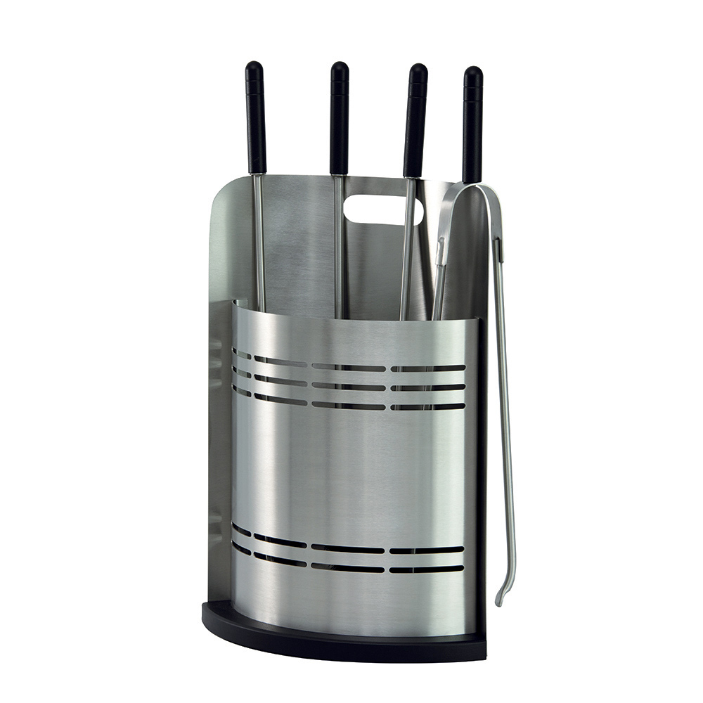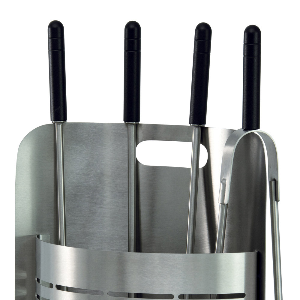 Seti përfshin 4 aksesorë , të gjithë thelbësorë për ruajtjen e zjarrit dhe pastrimin e oxhakut. Prania e një doreze në pjesën e sipërme ju lejon të ngrini me lehtësi të gjithë mbajtësin e mjetit dhe ta lëvizni atë ku dëshironi. Dizajni i tij është funksional por nuk neglizhon estetikën, me linja të pastra dhe një strukturë solide që e bën atë një element të qëndrueshëm dhe me stil brenda shtëpisë.