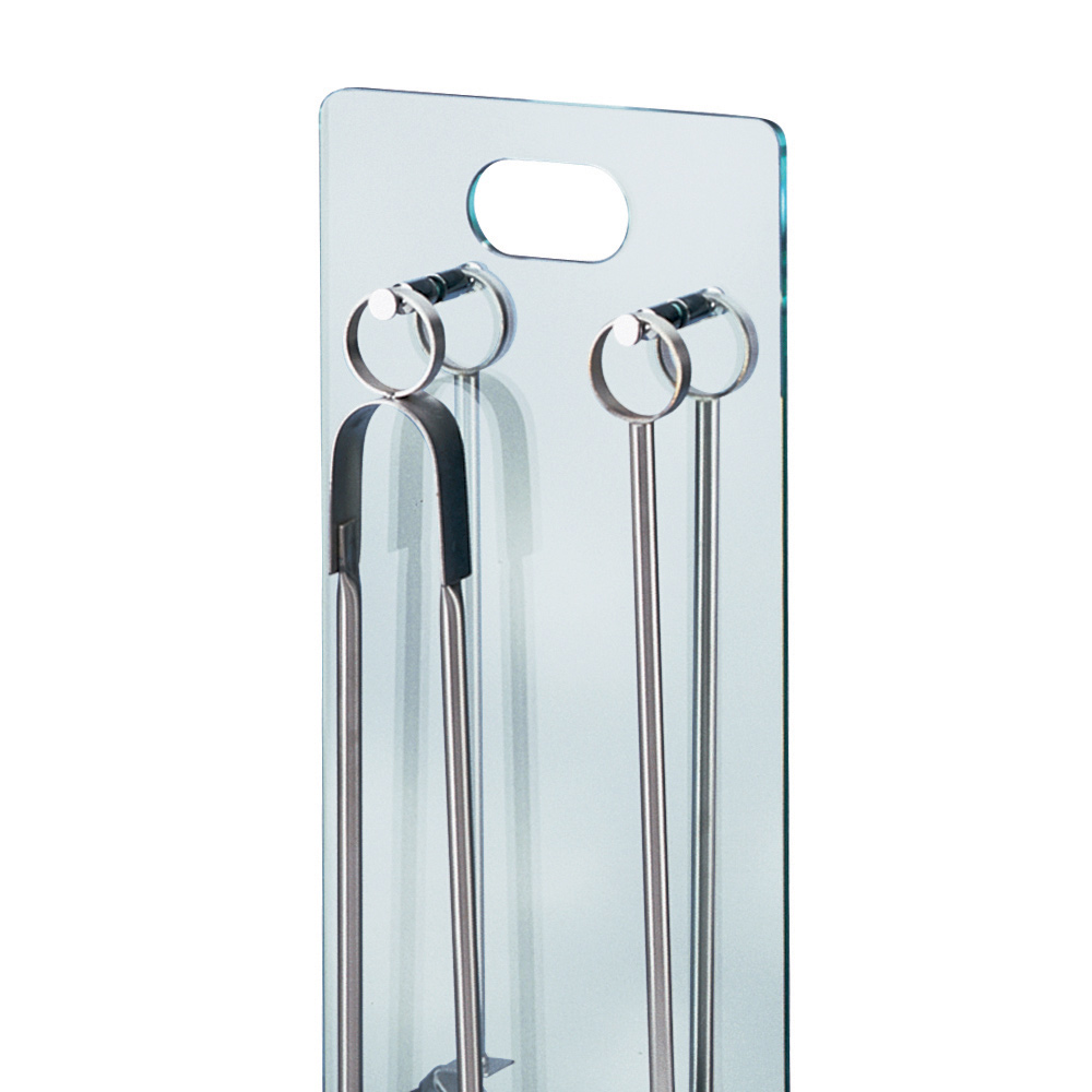 Mbajtësja e veglave përfshin katër aksesorë thelbësorë të oxhakut : një kapëse, një lopatë, një grep dhe një furçë . Çdo mjet është projektuar për të ofruar efikasitet dhe rehati maksimale gjatë përdorimit, duke kombinuar prakticitetin me estetikën e rafinuar.