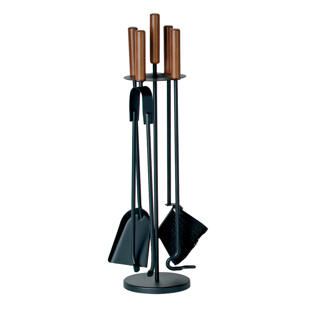 Kompleti përfshin katër mjete bazë, secila e krijuar për menaxhim efikas dhe të sigurt të zjarrit . Linjat e holla dhe të gjata të veglave ofrojnë lehtësi në përdorim dhe një prekje elegance, ndërsa shtrirja vertikale optimizon hapësirën dhe organizimin.