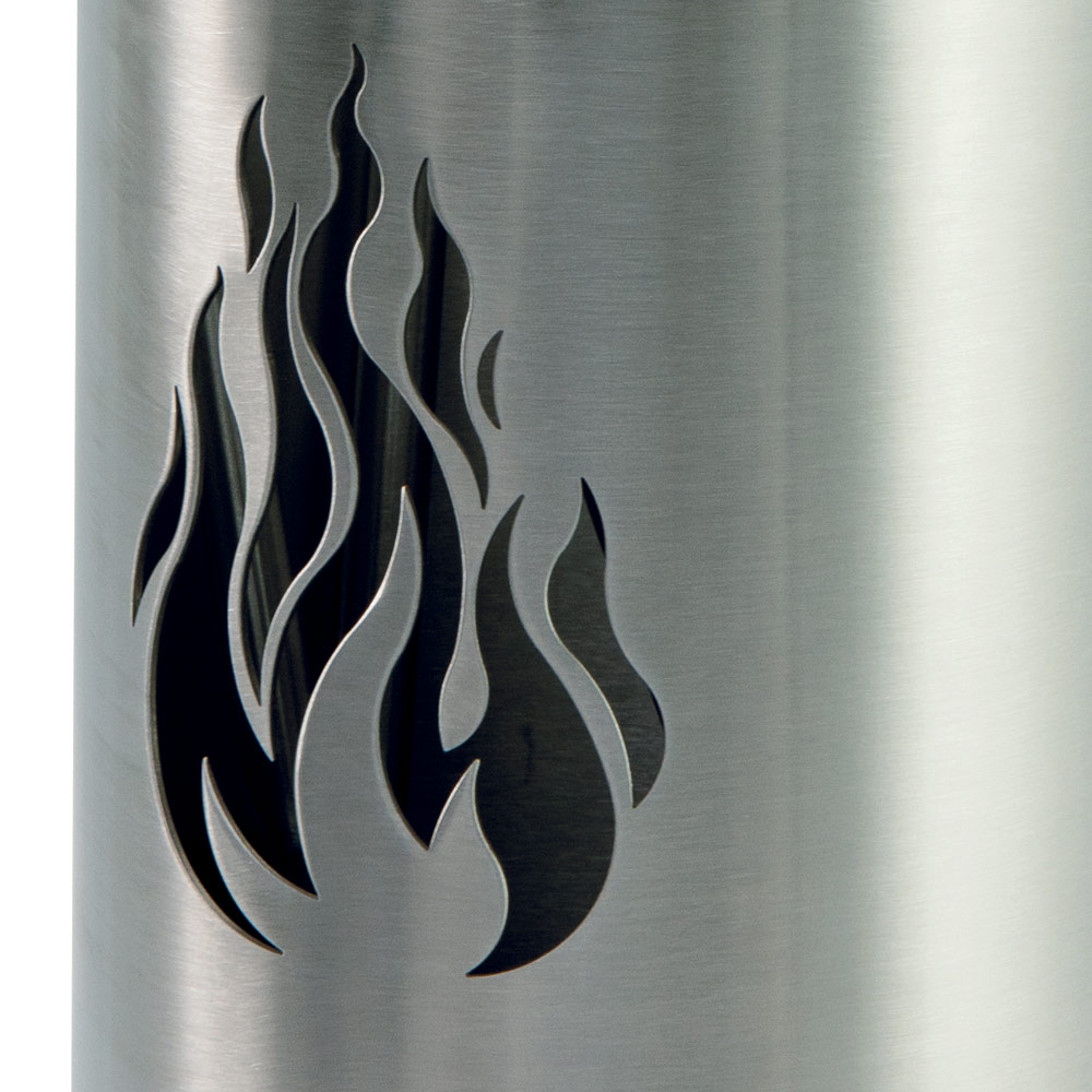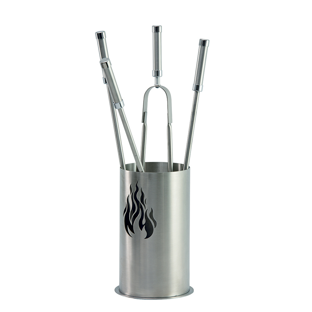 Ky mbajtës i veglave të zjarrit, i bërë nga çelik inox me cilësi të lartë, është i domosdoshëm për këdo që dëshiron të kombinojë funksionalitetin dhe elegancën. Dizajni i tij bashkëkohor, i karakterizuar nga linja të pastra dhe një gdhendje tërheqëse në formë flake , e bën atë një objekt të vërtetë arti, të përsosur për t'i shtuar një prekje modernitetit ritualit tradicional të zjarrit.