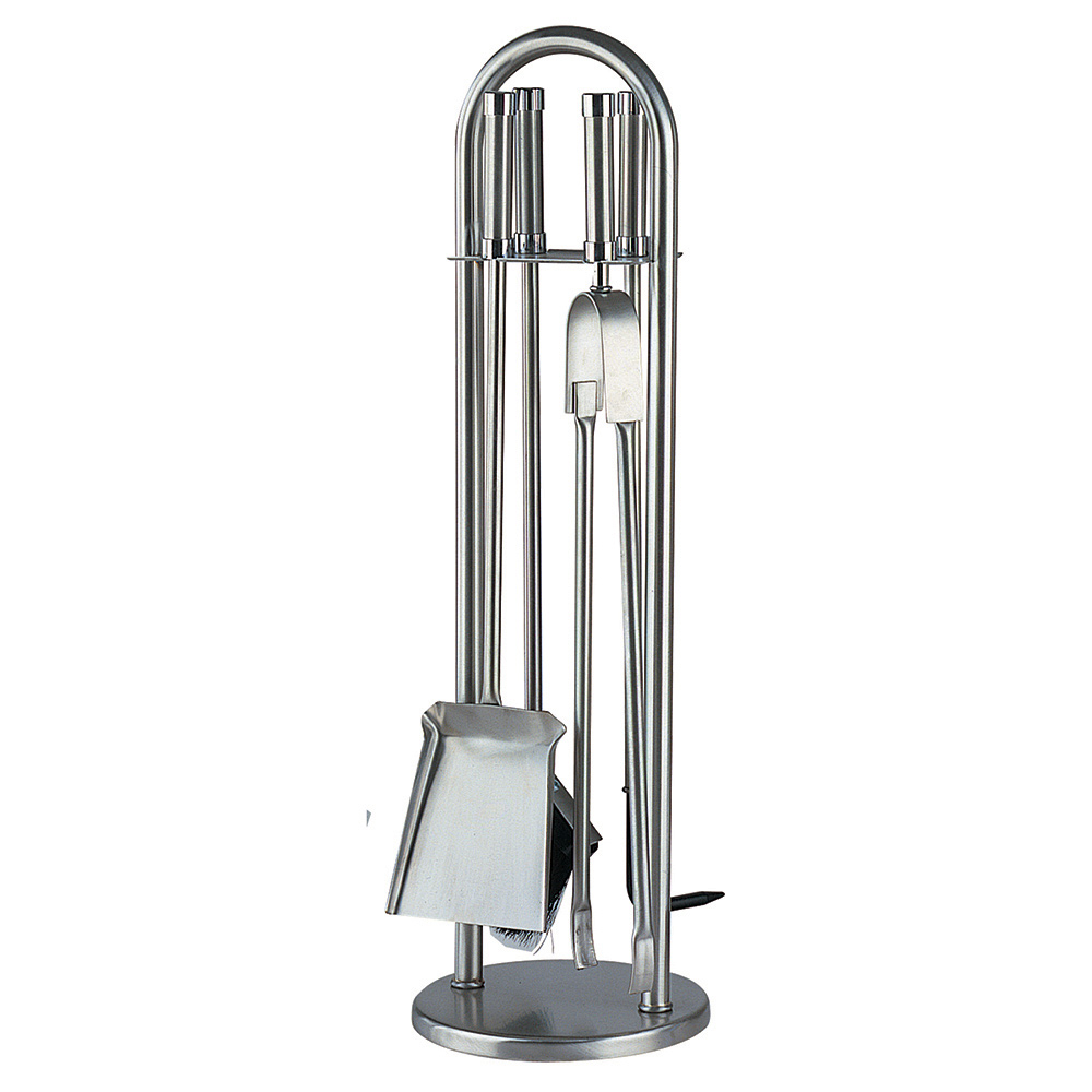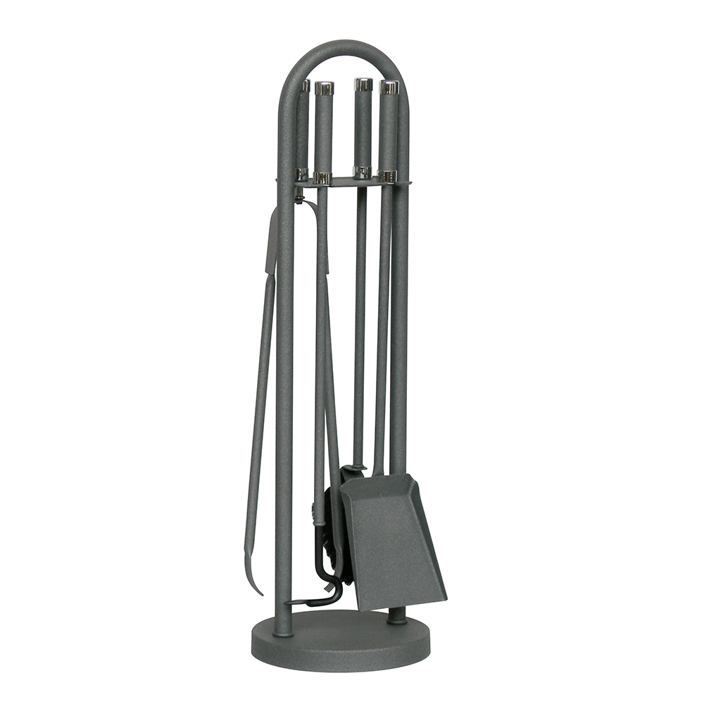 Kompleti përfshin katër mjete thelbësore për kujdesin e oxhakut tuaj , secila me doreza të gjata për menaxhimin e sigurt të zjarrit. Mjetet varen në mënyrë elegante në stendë, duke e bërë kompletin jo vetëm praktik, por edhe një pjesë integrale të dekorit tuaj.