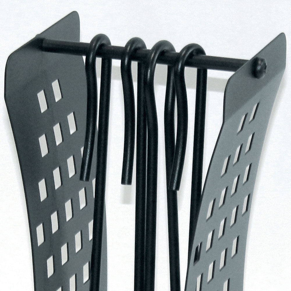 Me një ndërtim të fortë dhe një përfundim të zi, ai siguron jetëgjatësi dhe mirëmbajtje të lehtë . Dorezat e forta ofrojnë një kapje të sigurt, duke ju lejuar të menaxhoni zjarrin në mënyrë efektive dhe pa mundim. Baza është projektuar për t'i mbajtur mjetet drejt, duke optimizuar hapësirën dhe duke kontribuar në një mjedis të rregullt.