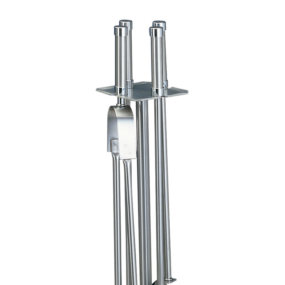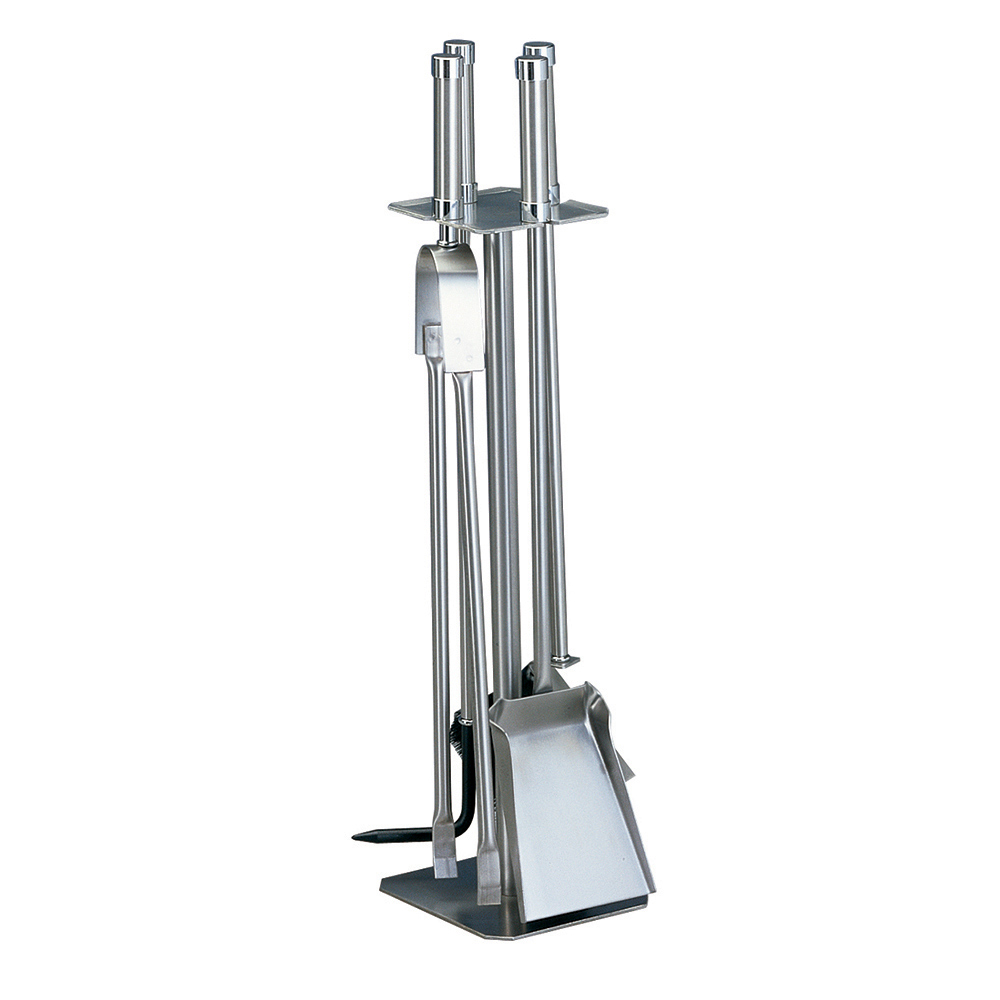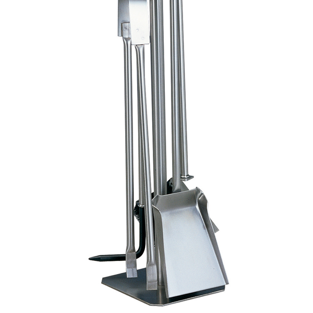 Seti përbëhet nga katër pjesë thelbësore, secila me një dorezë të gjatë për trajtimin e sigurt dhe të rehatshëm të zjarrit. Dizajni i hollë dhe baza elegante katrore sigurojnë që mjetet të jenë gjithmonë brenda mundësive, ndërsa pamja minimaliste i përshtatet çdo ambienti, nga më tradicionali deri tek ai modern.