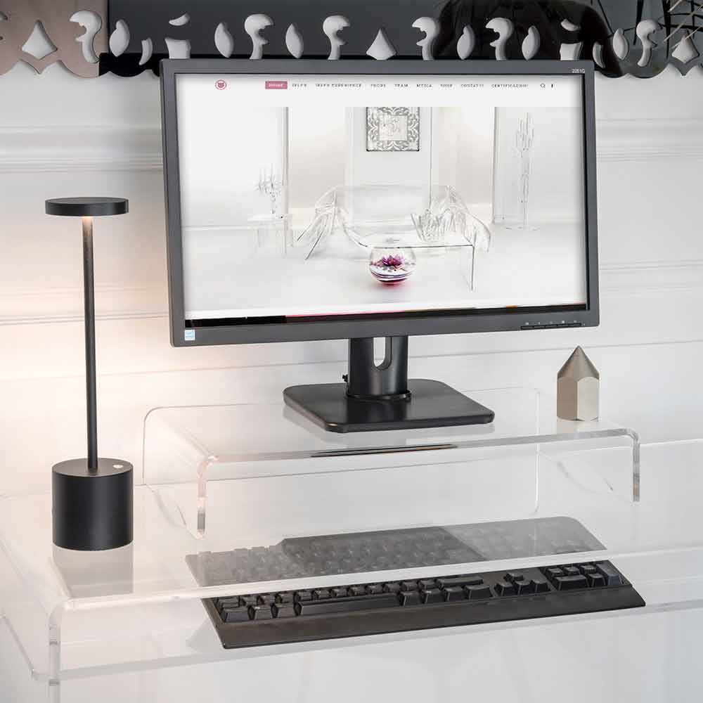 Monitoroni mbështetjen në pleksiglas transparent ose të tymosur të modelit të prodhuar në Itali.