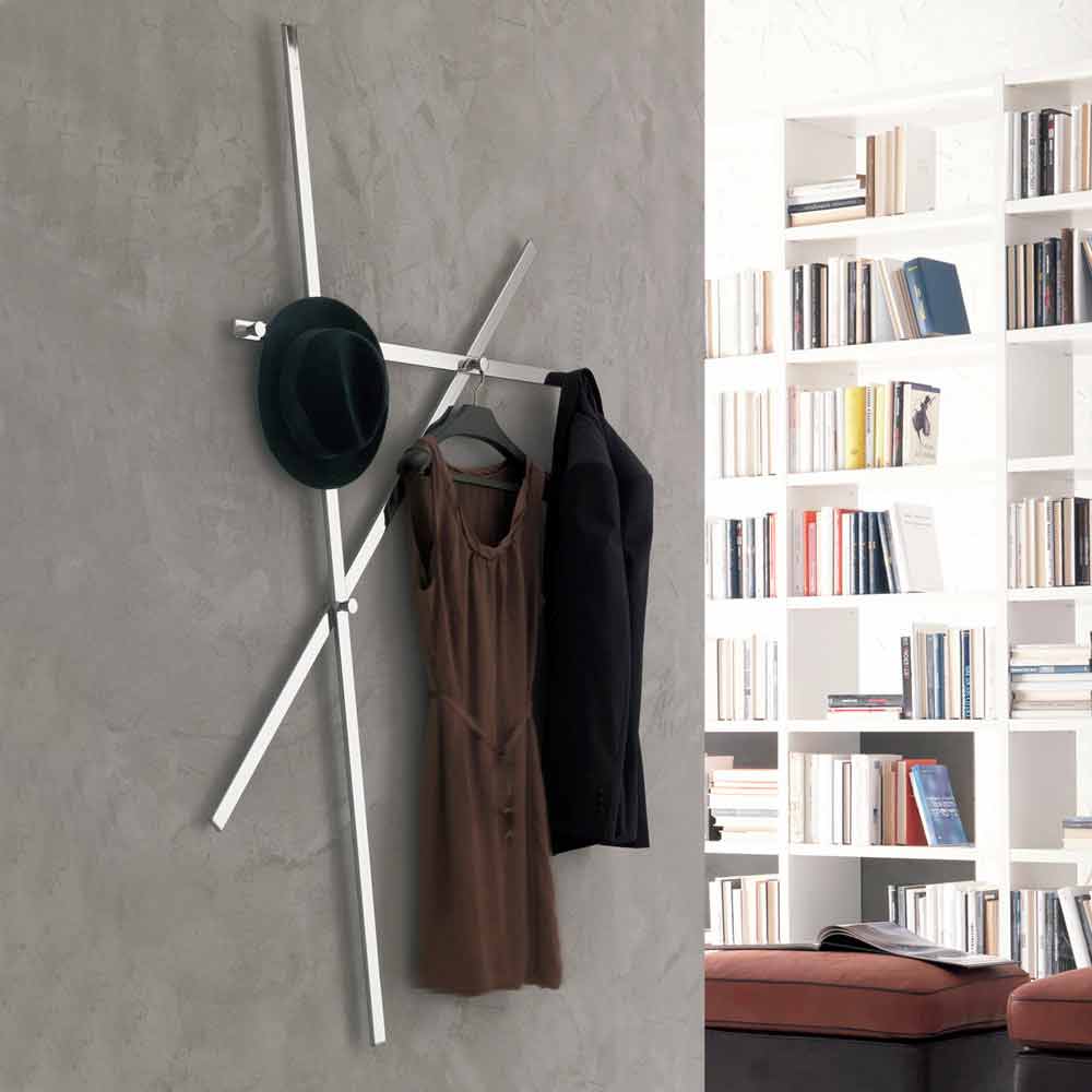 Varëse rrobash moderne llambë muri e prodhuar në Itali me strukturë metalike të pikturuar e pajisur me 5 grepa që përputhen. Një dizajn i stilizuar i karakterizuar nga linja të thjeshta që luan në përdorimin e formave gjeometrike për të pasuruar estetikën e produktit me personalitet. Përfundimet e disponueshme e bëjnë atë një zgjidhje veçanërisht të gjithanshme mobilimi, pra e adaptueshme për çdo dhomë në shtëpi me një shije moderne në të cilën kompleton mobiljet duke krijuar një harmoni të mrekullueshme të stileve. Varëse rrobash është një pjesë thelbësore e mobiljeve në çdo shtëpi dhe duhet të plotësojë kërkesat e funksionimit dhe të dizajnit. Estetika është në të vërtetë e rëndësishme pasi krijon një harmoni me elementët përreth dhe ofron një zgjidhje praktike dhe rezistente, mbi të cilën vendosen xhaketa, pallto dhe çanta gjatë kthimit në shtëpi. Kjo varëse mishëron këto karakteristika themelore, duke provuar se është një zgjedhje perfekte, e aftë të kënaqë çdo kërkesë në mënyrën më ekskluzive.