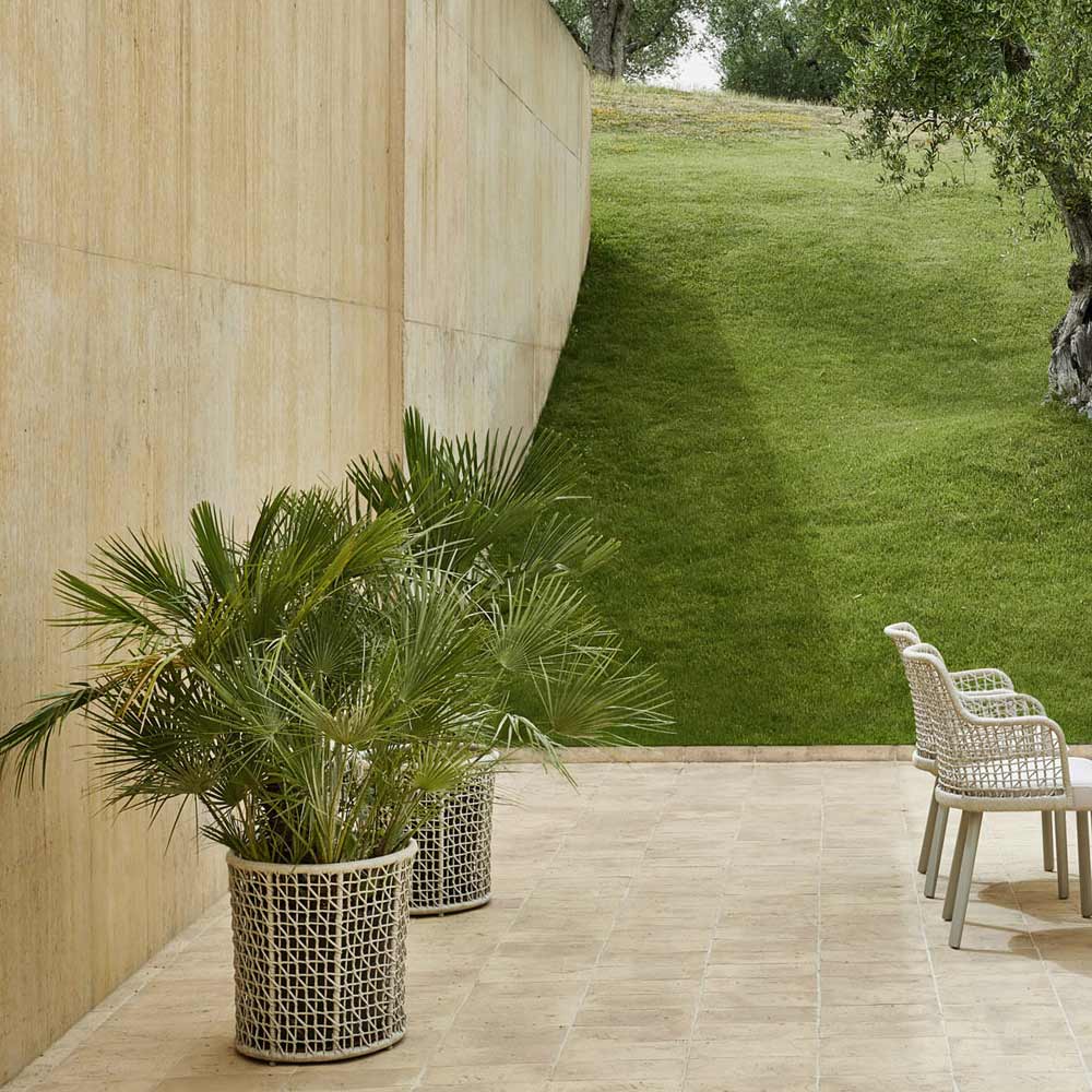 E karakterizuar nga linja të thjeshta dhe të pastra , kjo mbjellëse dekorative përfaqëson zgjidhjen ideale për të kombinuar funksionalitetin dhe elegancën në një produkt të vetëm, karakteristika perfekte për të kompletuar arredimin e ambienteve të jashtme me një shije bashkëkohore.