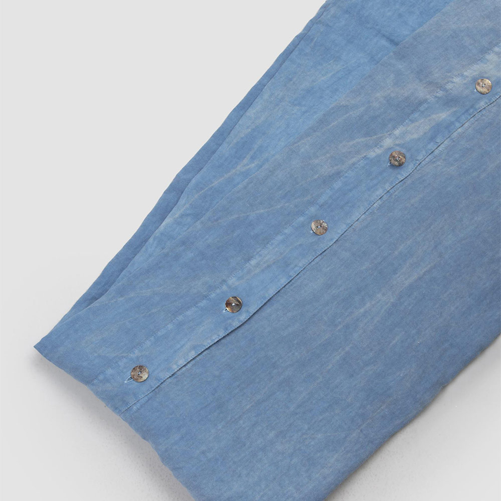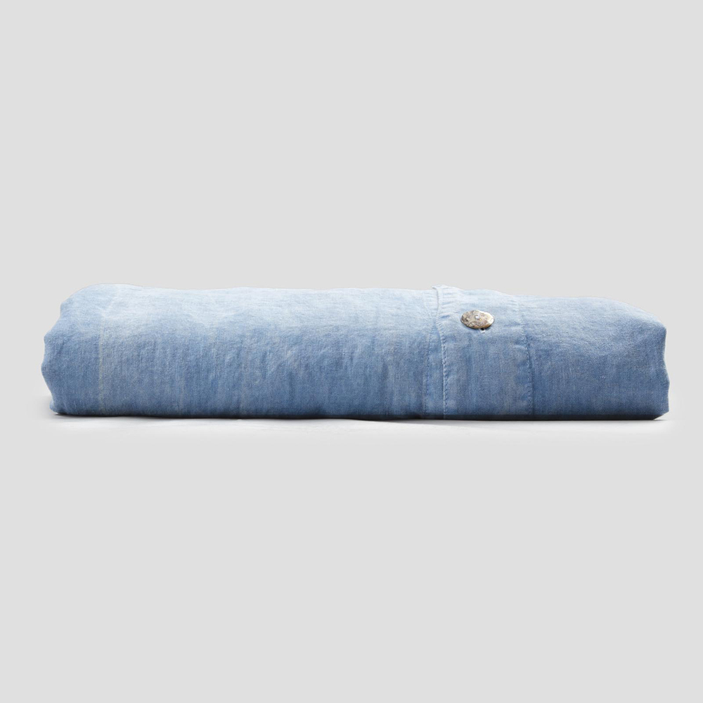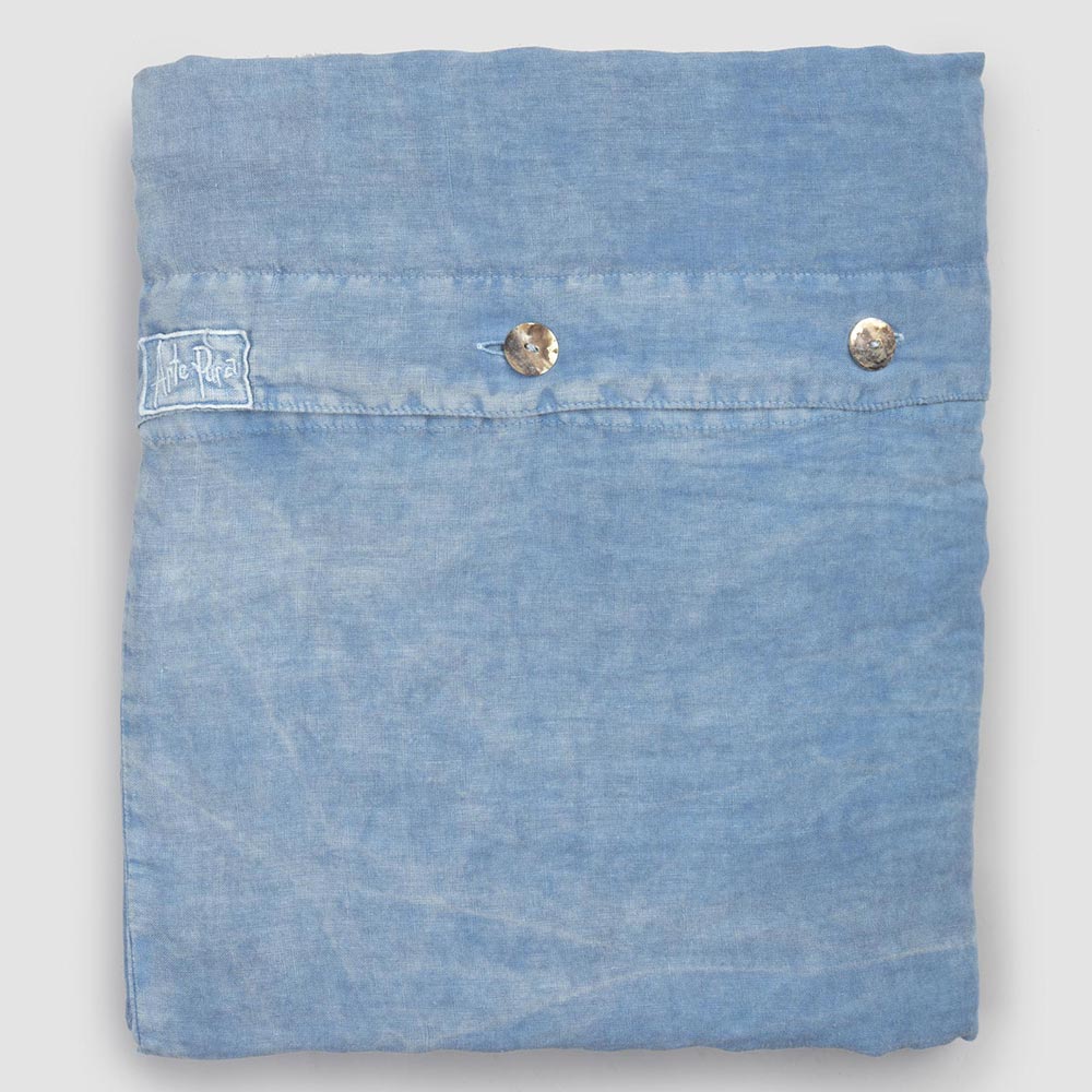 Mbulesë dyshe dysheku me butona dhe përplasje në liri blu të lehta, dizajn luksoz i punuar me dorë, i prodhuar në Itali.