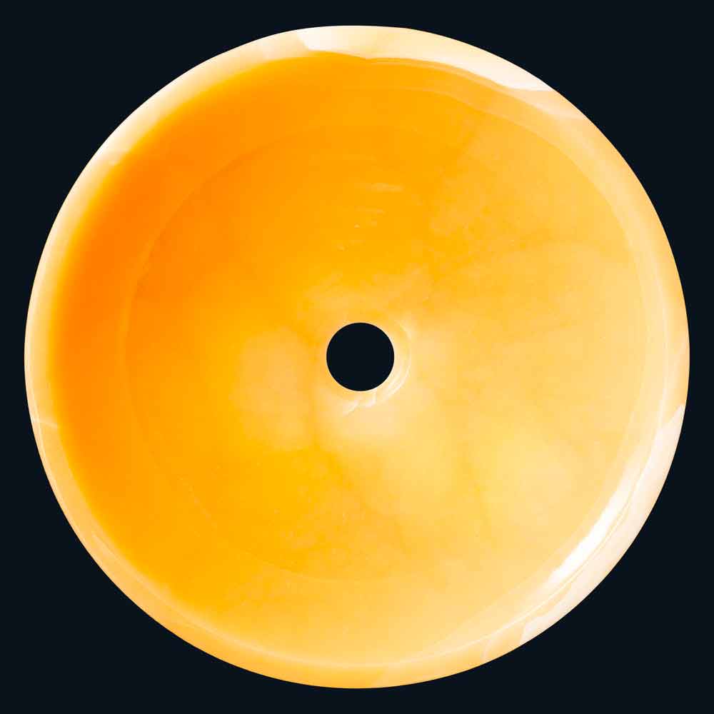 Pellgu i rrumbullakët në gurin oniks portokalli Aris