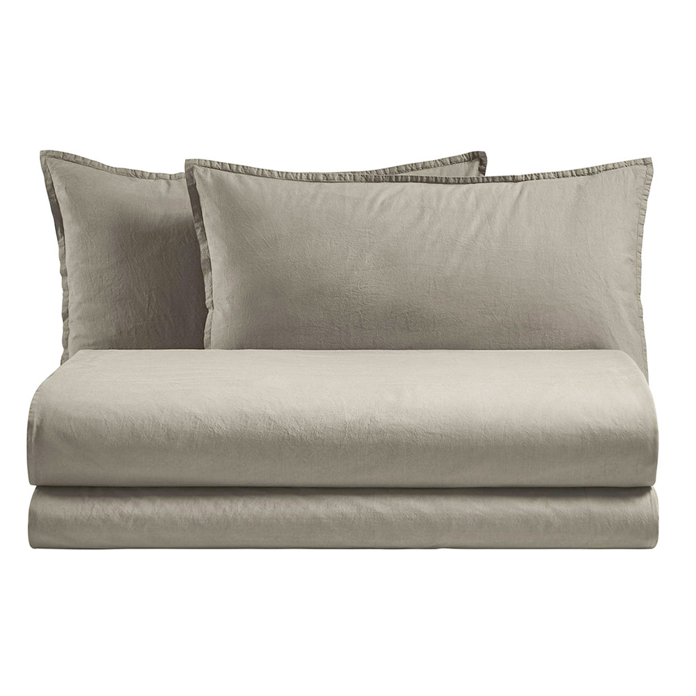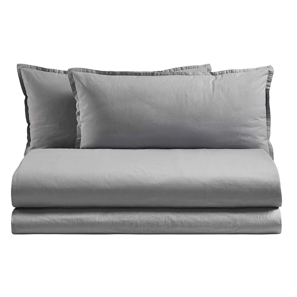 komplet krevatesh dyshe prej pambuku të pastër të lyer me veshje. Tekstura e butë dhe e frymëmarrjes e pambukut siguron rehati të pashoqe, ndërsa teknika e ngjyrosjes së veshjeve jep një ngjyrë të pasur dhe afatgjatë që zgjat larje pas larjes. E përkryer për ata që duan të kombinojnë stilin dhe funksionalitetin, ky grup përfshin një mbulesë jorgani, çarçafë të poshtëm dhe këllëfë jastëku që përputhen, të gjitha të dizajnuara për t'ju ofruar rehati maksimale dhe për të shtuar një prekje të sofistikimit në dhomën tuaj.