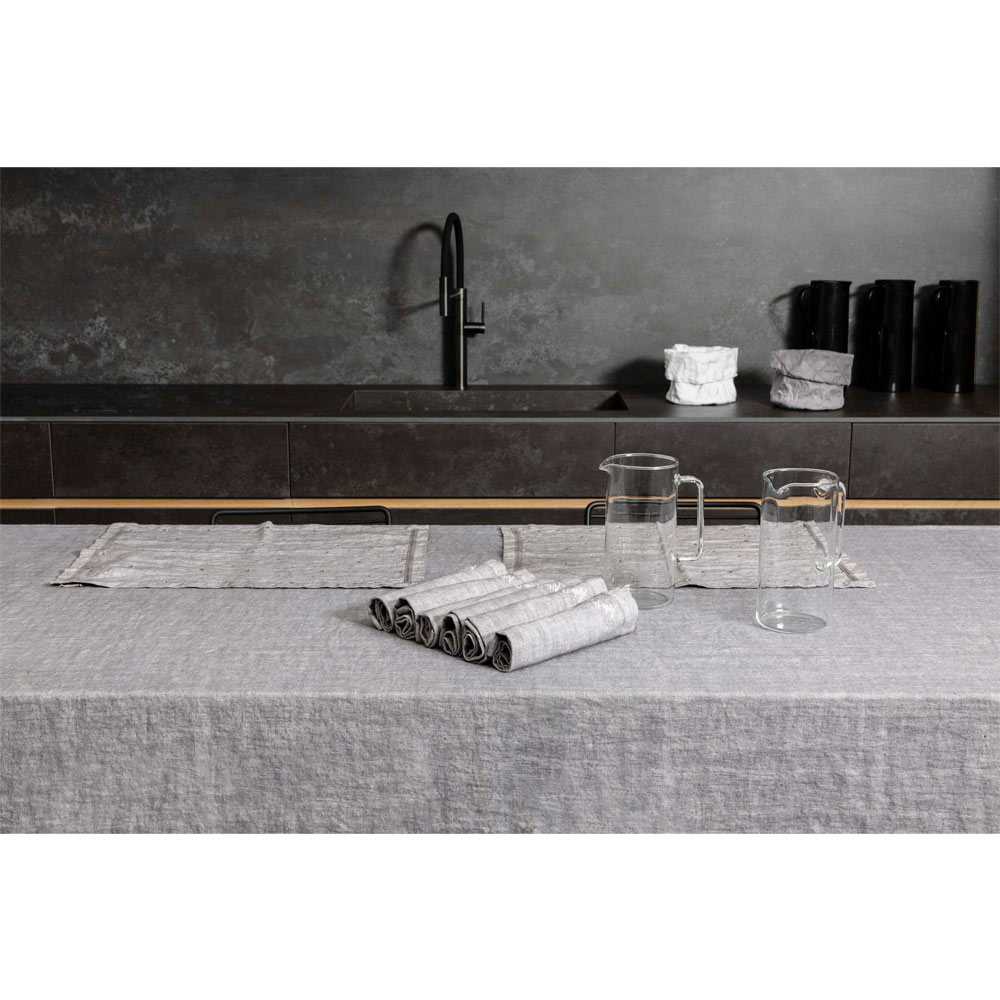 mbulesë tavoline prej liri gri antracite të zbukuruar me një kufi gjeomerik. Prodhuar në Itali me materiale me cilësi të lartë dhe e bërë e butë në prekje falë trajtimeve të veçanta që rrisin pamjen natyrale. Ideale për tryezën pasi është apoalergenike dhe antibakteriale, përveç përdorimit të