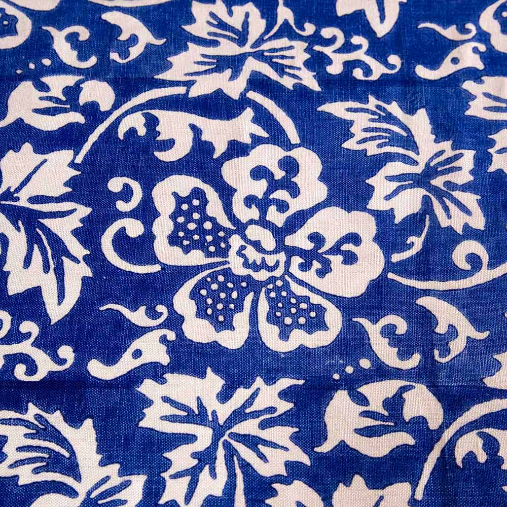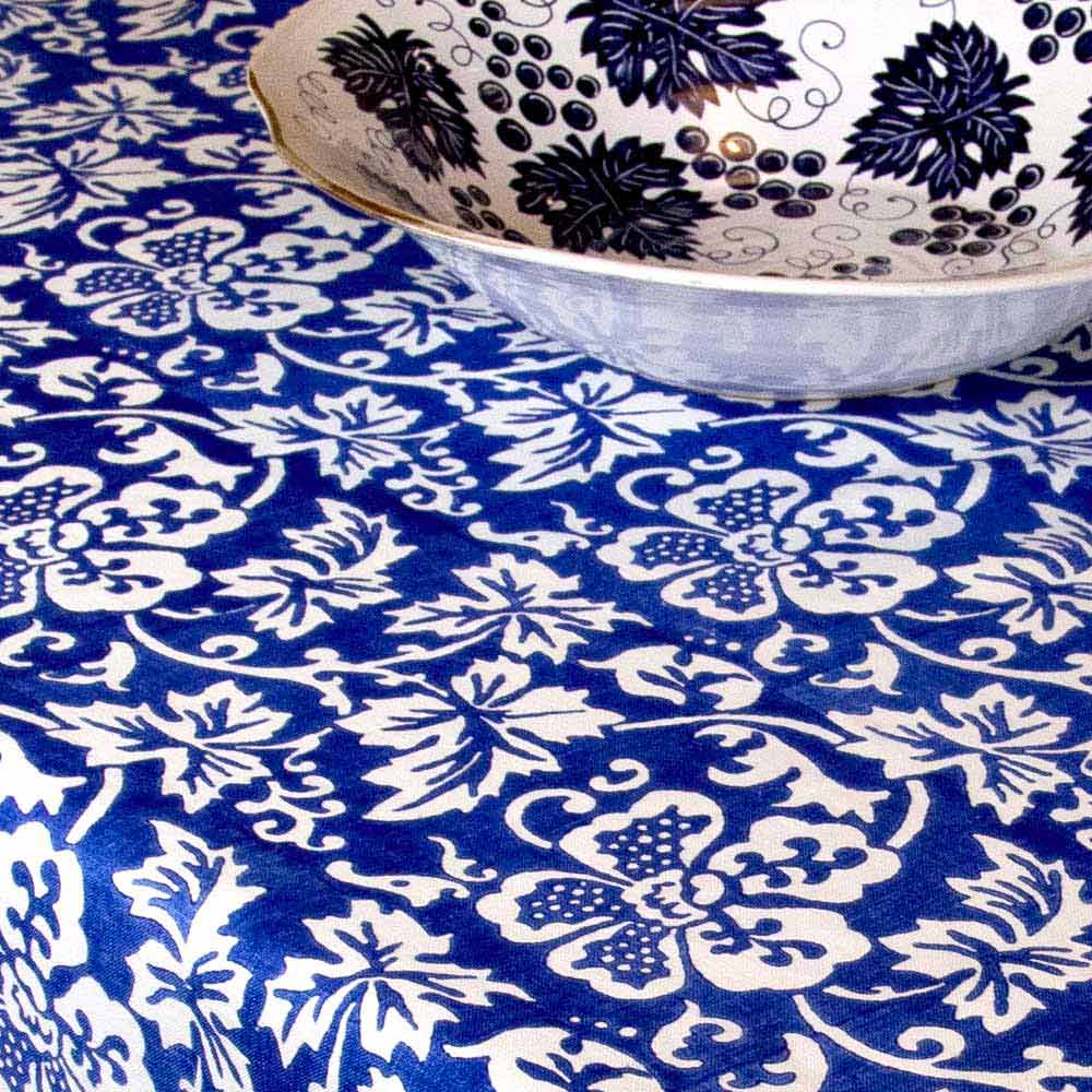 Mbulesë tavoline italiane me cilësi të lartë në liri të pastër, plotësisht të shtypura me dorë në blu ose ndryshk me kallëpe druri me një dizajn artistik të një dritare trëndafili, një copë unike dhe cilësore e bërë në Itali.