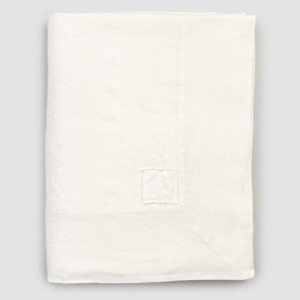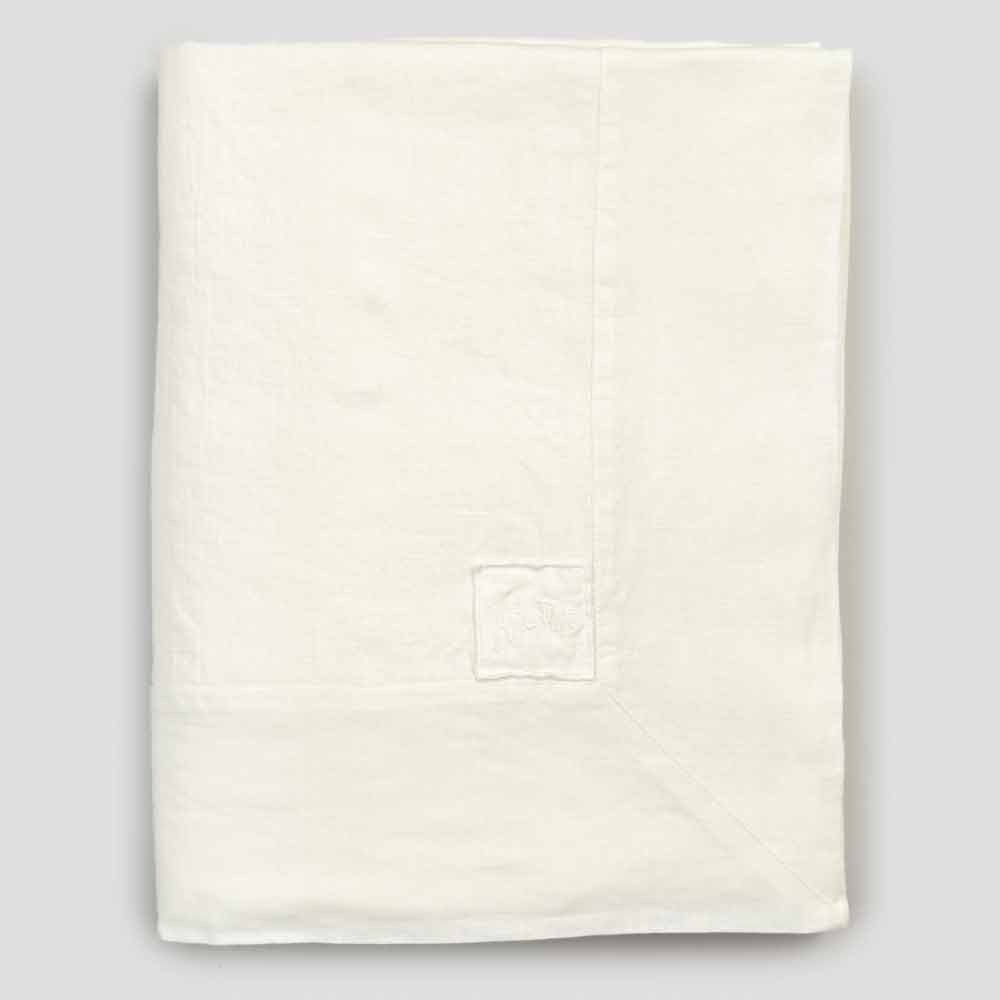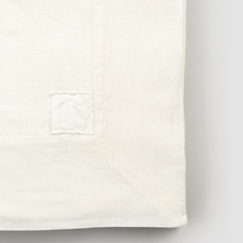 Mbulesë tavoline drejtkëndëshe në liri të bardhë natyror me buzë të kornizuara, dizajn luksoz i punuar me dorë i bërë në Itali.