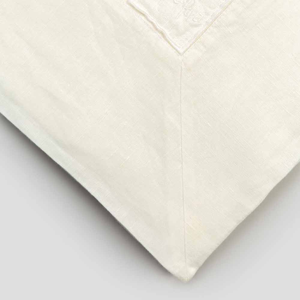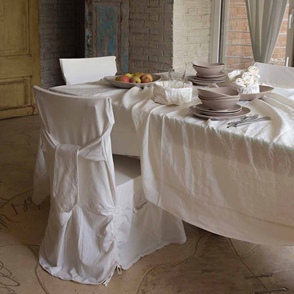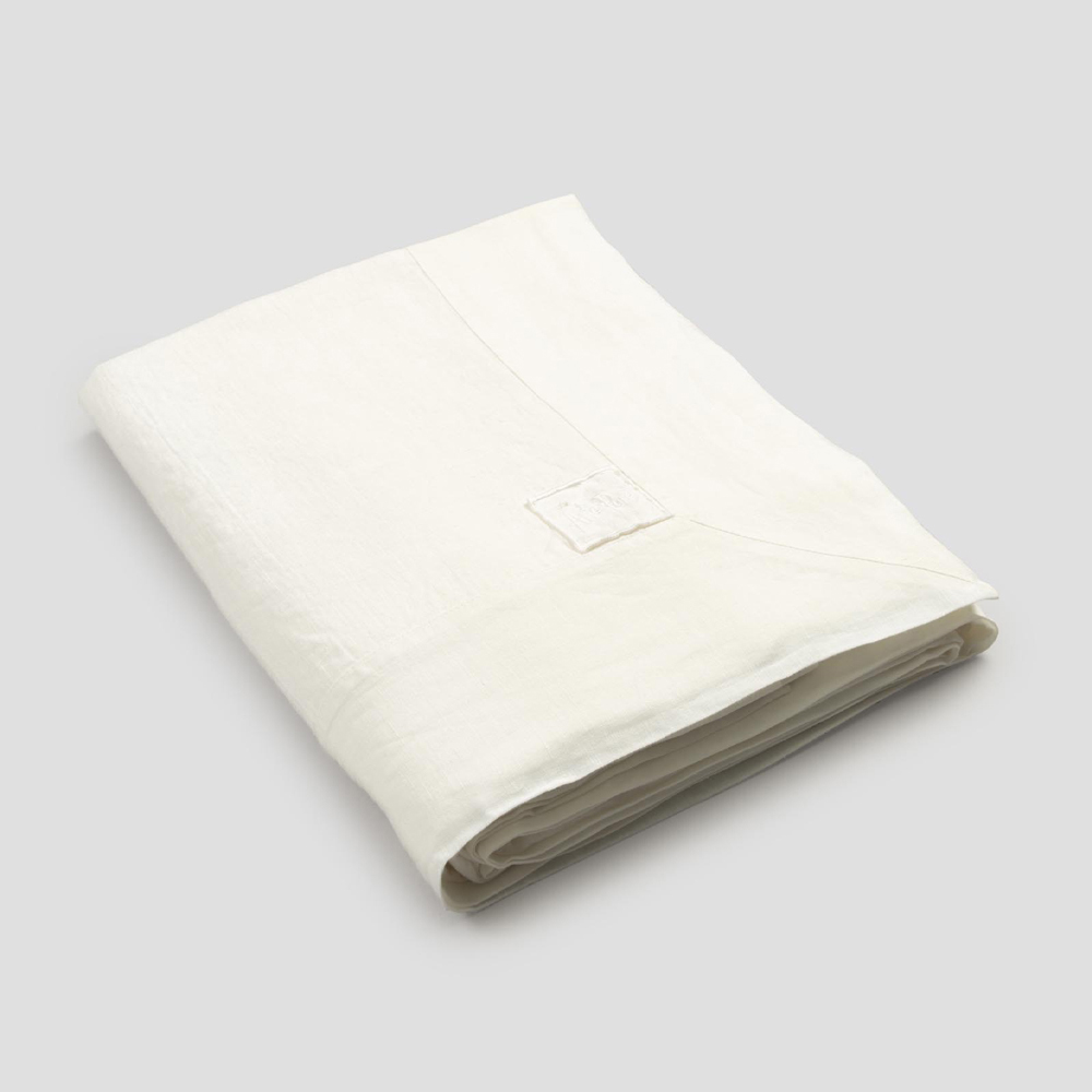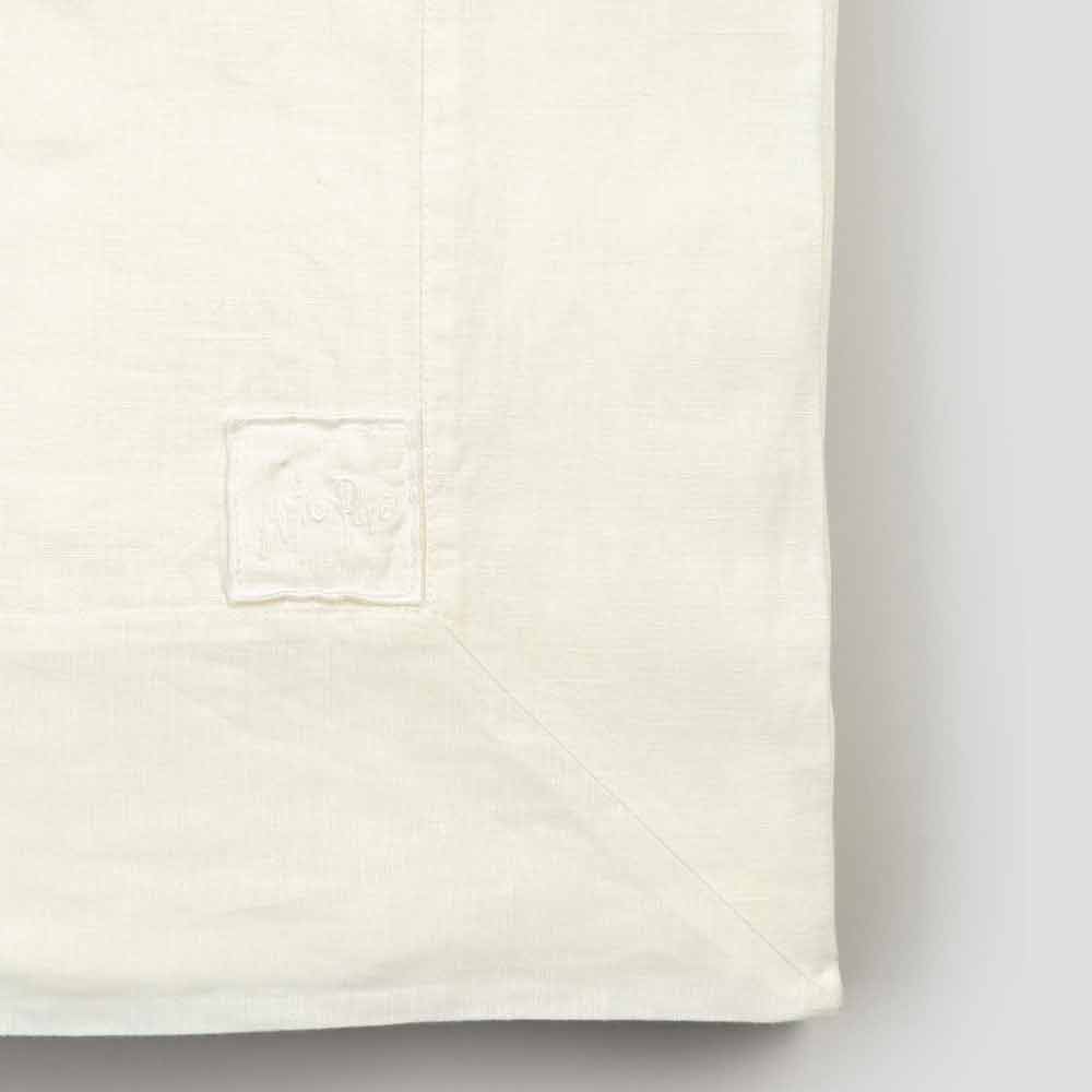 Mbulesë tavoline drejtkëndëshe në liri të bardhë natyror me buzë të kornizuara, dizajn luksoz i punuar me dorë i bërë në Itali.