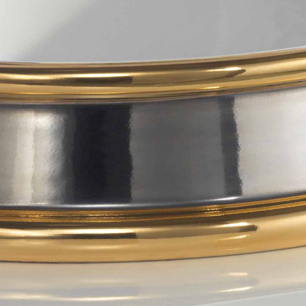 Lavamani me banjë gjysmë të prodhuar në Itali në argjilë prej argjile, të bërë me dorë, me dorezë shirita pikturuar në platin dhe unaza të pikturuara me fund të artë 24k.