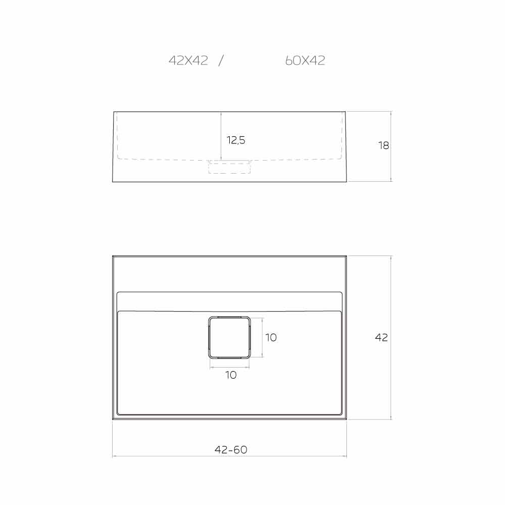 Në dispozicion në 16 ngjyra të ndryshme dhe dy madhësi të ndryshme: - L 42 x P 42 x H 18 cm; - L 60 x P 42 x H 18 cm.