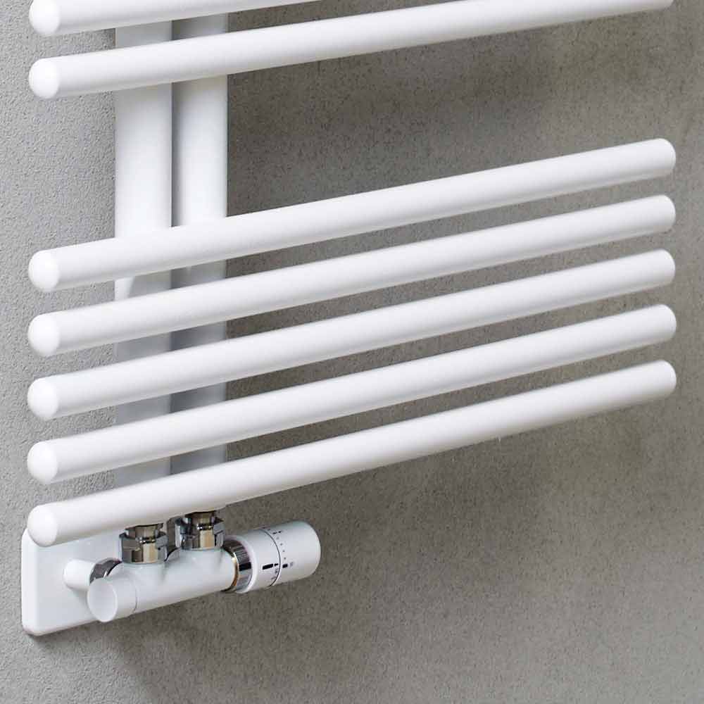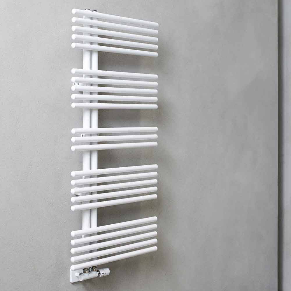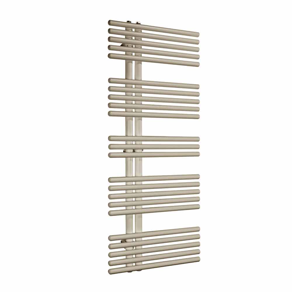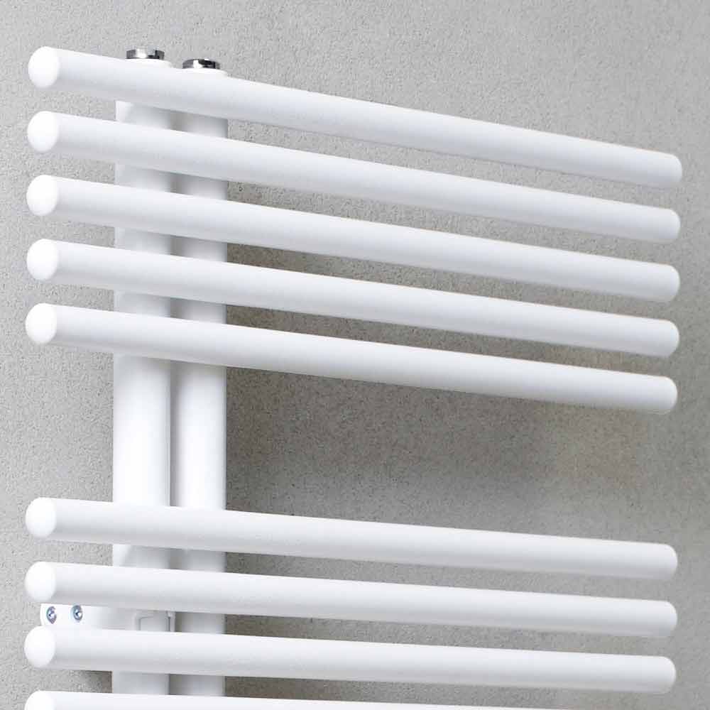 radiator me peshqir më të ngrohtë përmban një dizajn të bërë me tuba vertikalë me diametër 35 mm dhe tuba horizontale të rrumbullakët me diametër 25 mm. Forma e tij moderne dhe e veçantë e bën atë të