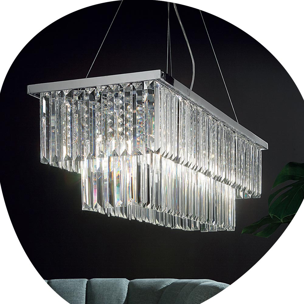 Pika e vërtetë e fortë e saj konsiston në elementët dekorativë në kristal të prerë që dekorojnë, duke ndriçuar çdo dhomë me shije dhe karakter, në një përzierje stili, klasi dhe inovacioni.